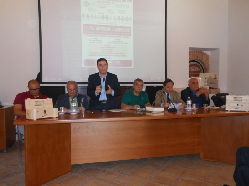 “Ss 106: superiamo l’immobilismo”. E’ stato questo il tema di una valida iniziativa di carattere socio culturale organizzata dall’Associazione di Calopezzati “Basta vittime sulla S.s. 106”. L’evento di sensibilizzazione e confronto sull’atavico problema della messa in sicurezza e ammodernamento dell’importante arteria stradale che collega il Sud con il Nord dell’Italia è stato realizzato presso l’auditorium ‘Amarelli’ di Rossano con il patrocinio dell’Ordine dei Commercialisti e degli esperti contabili di Rossano, della Sois, Società italiana di sociologia, Sezione Calabria, e di ben 13 comuni ricadenti nel basso Jonio cosentino, nella valle del Trionto e nella Sila Greca. Si tratta dei Comuni di Bocchigliero, Calopezzati, Caloveto, Campana, Cariati, Cropalati, Crosia, Longobucco, Mandatoriccio, Paludi, Pietrapaola, Rossano e Terravecchia.