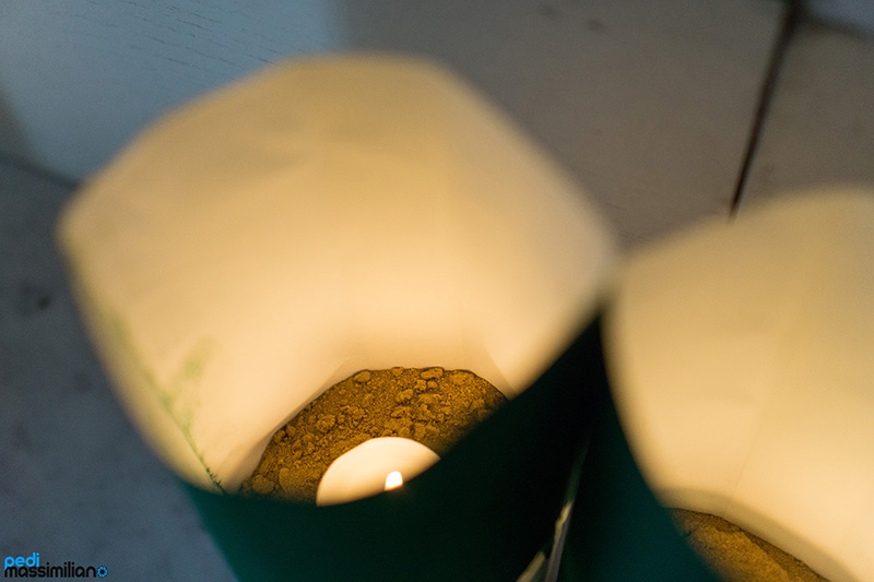 Già dalla mattina del 23 Luglio, i cittadini ed i visitatori cercano di studiare una postazione ottimale da dove poter ammirare nella sua interessa il disegno illuminato. Nel buio della scala, il chiarore dei coppi è un continuo crescendo di luci tremolanti, che attendono lentamente di spegnersi naturalemente. Gli addetti ai lavori, grazie ad un’organizzazione curata nei minimi dettagli, quando la folla si dilegua a fine spettacolo, prontamente provvedono a sostituire uno ad uno i lumi con altri nuovi, ognuno nella posizione perfetta in cui si trovavano, volti a mantenere il disegno nella sua perfezione e pronti ad essere riaccesi nella sera successiva. Lo spettacolo della scala illuminata è proposto le sere del 24 e del 25 luglio in occasione della festa di San Giacomo.