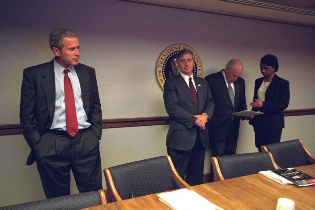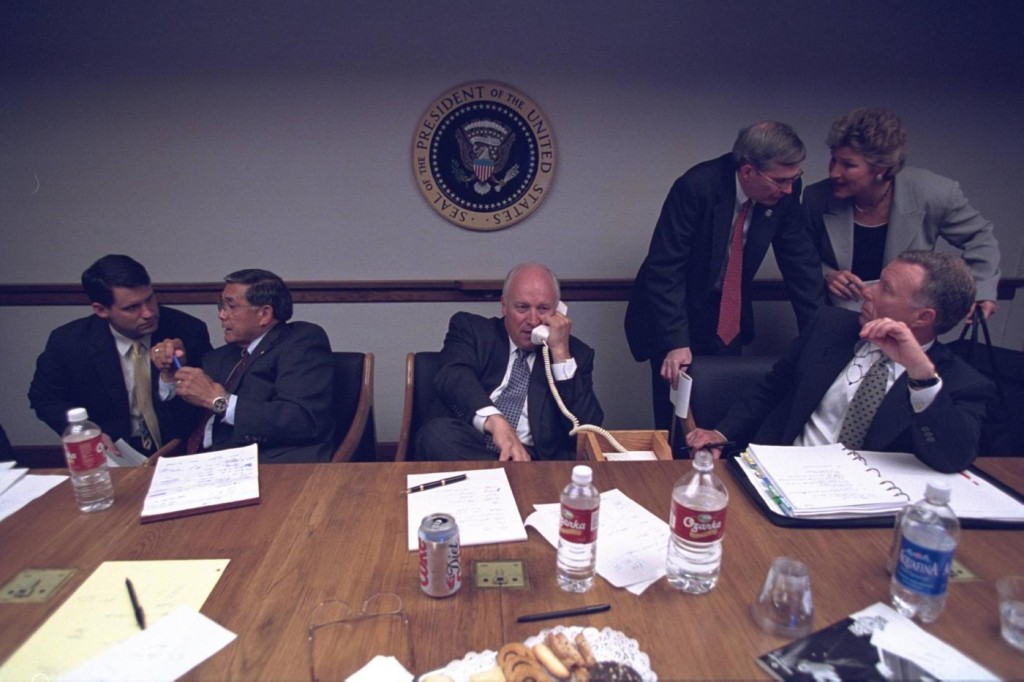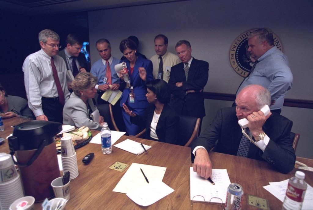 Telefonate, conversazioni concitate e i volti preoccupati di George W. Bush e del suo vice presidente Dick Cheney davanti alle televisione che trasmetteva le agghiaccianti immagini dell’attentato alle Torri Gemelle. Sono state pubblicate ieri per la prima volta, e rilanciate da tutti i siti americani, centinaia di immagini che mostrano come il presidente e il suo staff, rinchiusi in un bunker della Casa Bianca, vissero i primi drammatici momenti dell’attacco. Nelle foto compaiono anche Condoleezza Rice – all’epoca consigliere per la sicurezza nazionale – il segretario di Stato Colin Powell e la first lady Laura Bush. Tra le tante immagini, scattate dallo staff del vicepresidente, ce n’e’ anche una in cui proprio Cheney è ritratto seduto, i piedi sulla scrivania, mentre guarda le immagini dell fumo uscire da una delle due Torri.