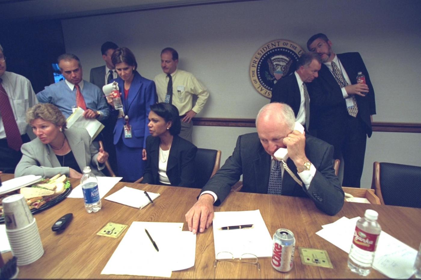 Telefonate, conversazioni concitate e i volti preoccupati di George W. Bush e del suo vice presidente Dick Cheney davanti alle televisione che trasmetteva le agghiaccianti immagini dell’attentato alle Torri Gemelle. Sono state pubblicate ieri per la prima volta, e rilanciate da tutti i siti americani, centinaia di immagini che mostrano come il presidente e il suo staff, rinchiusi in un bunker della Casa Bianca, vissero i primi drammatici momenti dell’attacco. Nelle foto compaiono anche Condoleezza Rice – all’epoca consigliere per la sicurezza nazionale – il segretario di Stato Colin Powell e la first lady Laura Bush. Tra le tante immagini, scattate dallo staff del vicepresidente, ce n’e’ anche una in cui proprio Cheney è ritratto seduto, i piedi sulla scrivania, mentre guarda le immagini dell fumo uscire da una delle due Torri.