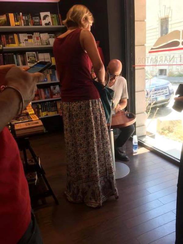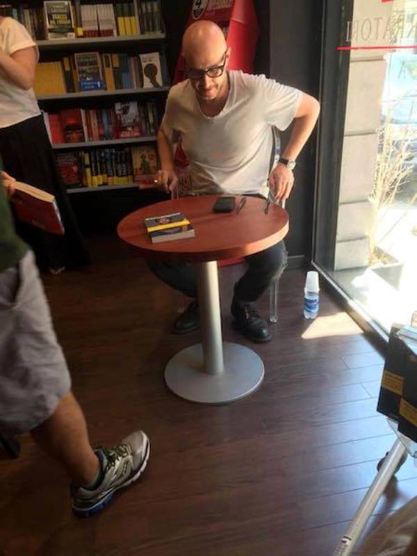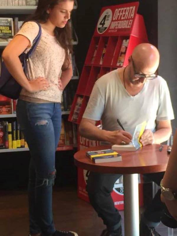 Durante l’incontro, ha firmato le copie acquistate dai presenti e permesso di scattare qualche foto.