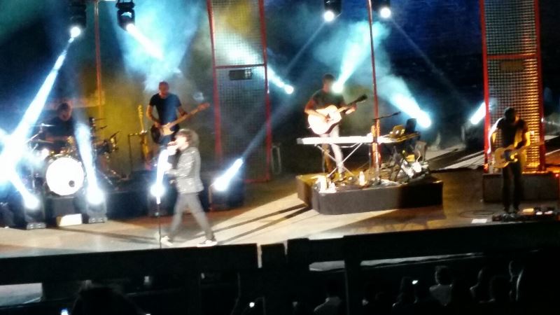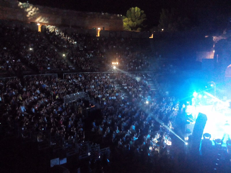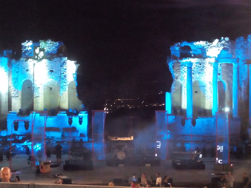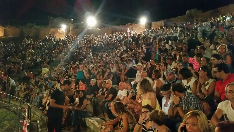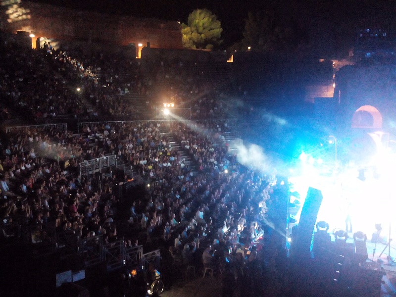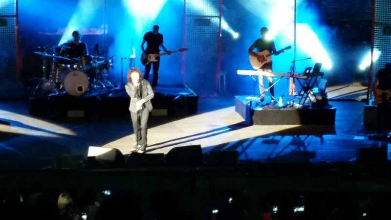 Spettacolo, emozioni e grande musica, questo è stato il mix offerto ieri sera da Francesco Renga al pubblico di Taormina. Ancora una volta un sold out da brividi per il cantautore friulano che ha stregato la platea siciliana con la sua voce accompagnata da una band di assoluto livello. Musica e parole prima di tutto, cosi potremmo definire la show che Renga ha tenuto al Teatro Greco di Taormina. Scenografia naturale: il teatro, la luna, e l’Etna a fare capolino, anch’essa fortunata spettatrice di una meravigliosa serata. Appena entrato in scena è stata la sua voce a rapire letteralmente gli spettatori con il primo brano, Un giorno bellissimo, intonato a gran voce dai fan, presenti numerosi; poi una raffica di canzoni senza alcuna sosta: Favole, La tua bellezza, Il mio giorno più bello del mondo. Da qui si arriva ad una pausa, piacevole, dove Renga chiacchiera con il pubblico, raccontando un pò la storia delle sue canzoni, la genesi dei suoi testi, nati da pensieri profondi ed emozioni vere vissute giorno dopo giorno nella quotidianità. Da qui l’invito a dire sempre ciò che si prova, manifestare i propri sentimenti, e non dare nulla per scontanto nei rapporti di coppia, un’invito che anticipa un meraviglioso brano: Era una vita che ti stavo aspettando, autentico tormentone dell’estate 2015.Lo spettacolo va avanti passando da brani quali: Raccontami,