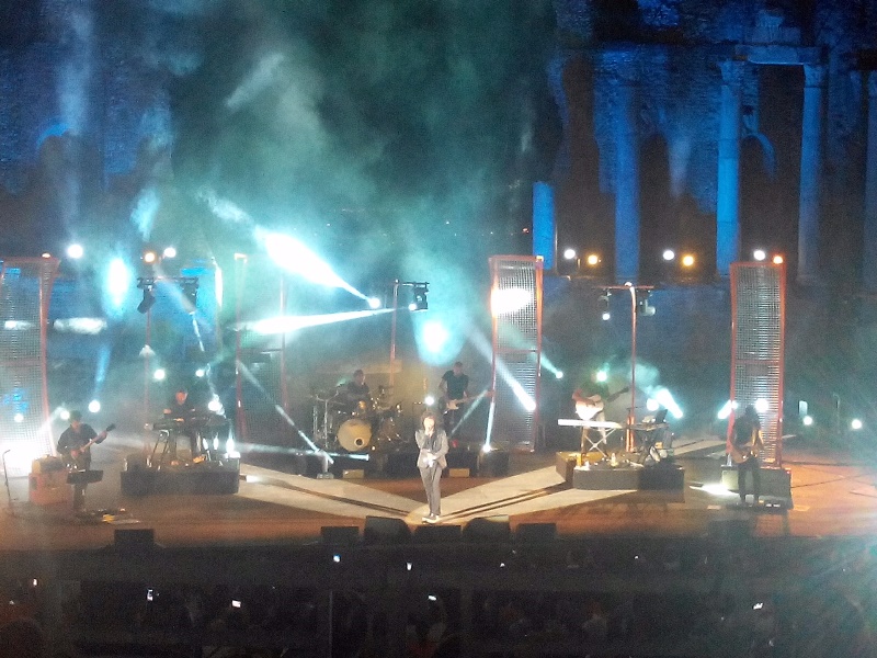 Un’ora in più, Cambio direzione, Almeno un pò, fino ad arrivare ad una canzone molto sentita da Renga, definita sociale e attuale:Ora vieni a vedere, dedicato a tutti coloro fanno fatica ad andare avanti, ad arrivare a fine mese, in questo periodo di crisi economica, prima di intonare il brano, lo stesso Renga ha personalmente voluto ringraziare tutti coloro che avessero fatto dei sacrifici economici per essere presenti al teatro nella serata del concerto.Come dicevamo, sono tante le emozioni e le tematiche affrontate dal cantante di Udine, naturalmente l’amore è il vero protagonista dei suoi brani, cosi si prosegue con momenti romantici grazie a canzoni come: Ancora di lei, Per farti tornare, Vivendo adesso, Sto già bene, Angelo e tante altre. Il pubblico, partecipe ed entusiasta per tutta la serata, diventa protagonista di uno spettacolo nello spettacolo; infatti, il fan club, ad insaputa di Francesco, durante la canzone Ci sarai, chiede a tutti i presenti di accendere le luci del proprio cellulare e cosi, d’incanto, il teatro si trasforma in un meraviglioso luccichio, uno colpo d’occhio da brividi. Il concerto si conclude con l’ultimo dei 25 brani proposti, Ad un isolato da te, canzone che chiude una meravigliosa serata, fatta di musica ed emozioni uniche, regalate da uno straordinario artista: Francesco Renga. Taormina…….ringrazia. In conclusione bisogna fare un plauso particolare all’impeccabile organizzazione dell’evento targato Musica e Suoni di Sebastiano La Ferlita, che ancora una volta ha realizzato una serata perfetta, per il pubblico siciliano e non solo.