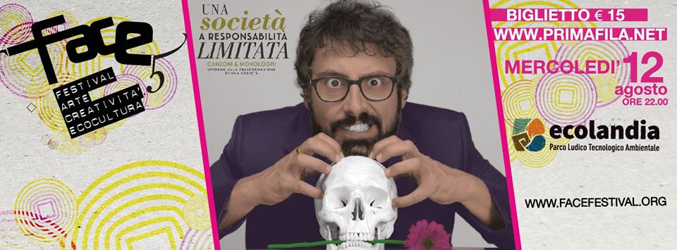 Brunori Sas, pluripremiato cantautore calabrese, ha scelto il FACE come unica data tra Calabria e Sicilia per il suo tour (prodotto e organizzato da Picicca/Gilda Produzioni) “BRUNORI SRL una società a responsabilità limitata” dove il cantautore racconta, attraverso musica e parole, canzoni e monologhi, la società che ci circonda.