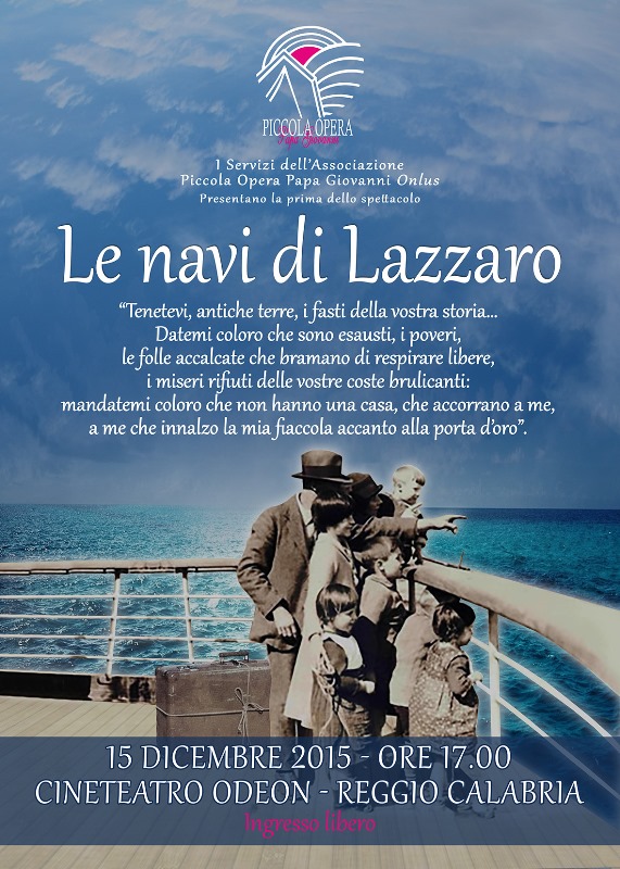Con la rappresentazione teatrale “Le navi di Lazzaro” si conclude l’anno di celebrazioni per la venticinquesima ricorrenza della scomparsa di Don Italo Calabrò. Il 15 dicembre, alle ore 17 andrà in scena presso il Cinema Teatro Odeon l’ultima realizzazione del gruppo di artisti della Piccola Opera che ormai da anni hanno individuato in questa forma espressiva una vera manifestazione dei modi di essere attivi e partecipi per le persone con disabilità. Quest’anno il tema sul quale si concentrerà la rappresentazione è quello delle migrazioni via mare, tema attuale e doloroso, ma tema che fa parte della storia dell’umanità, come ricordano le testimonianze dei nostri nonni che sono partiti per i viaggi della speranza verso le Americhe, alla ricerca di un mondo nuovo, di opportunità, di speranza, di sogno, di vita. La rappresentazione metterà in scena le emozioni, le suggestioni, le esperienze che vivono e hanno vissuto i migranti in ogni tempo della storia, dal momento dell’abbandono della propria casa fino al momento in cui le speranze si sono concretizzate. Il percorso emozionale sarà suggestivo e di grande impatto, la “compagnia teatrale” è composta da oltre cento persone che a un certo punto del racconto saranno presenti contemporaneamente in scena per festeggiare la speranza, la vita, il sogno realizzato, e la quasi totalità delle persone presenti sono persone con disabilità. In un certo senso anche il viaggio delle persone con disabilità nelle proprie comunità, civili, scolastiche, istituzionali, familiari persino, è un viaggio di migrazione da una condizione di difficoltà iniziale verso la speranza di una vita di inclusione, partecipazione, accettazione, non discriminazione, verso il legittimo sogno di una vita attiva e partecipe; a volte le stesse comunità di appartenenza possono apparire, agli occhi delle persone disabili e delle proprie famiglie, come uno sconfinato e rischioso mare in tempesta, con la riva che non si intravede e il porto che non offre ormeggi, e l’arrivo a volte rappresenta una sorta di resurrezione, come intende Giuseppe Pontiggia nel suo romanzo “Nato due volte”, sulla condizione delle persone con disabilità. Lo stesso fatto di mettersi in scena e rappresentare questo viaggio, invece, può essere la testimonianza della possibilità di un approdo sicuro, della capacità di affrontare un viaggio, della volontà di vedere riconosciuta senza ostacoli o pregiudizi una condizione di vita che ricade nell’ambito delle eventualità che la vita stessa contempla. In più, il fatto di essere in più di cento in scena, per questa specifica rappresentazione, è la testimonianza plastica di una scommessa sulla vita (si pensi che alcuni dei brani che saranno messi in scena sono stati scritti direttamente dagli attori). Assistere alla manifestazione del 15 dicembre all’Odeon sarà come essere presenti alla realizzazione concreta di uno dei messaggi più importanti del testamento spirituale di Don Calabrò, “nessuno escluso mai”