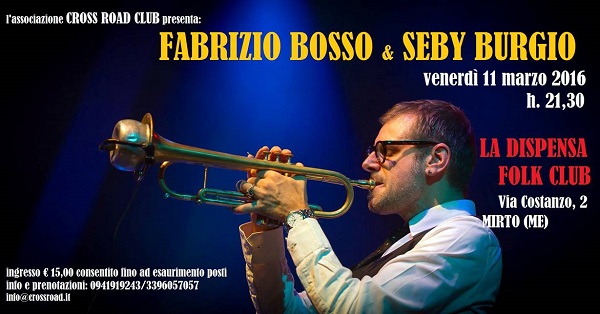 L’associazione Cross Road Club presenta un importante appuntamento alla Dispensa di Mirto; ospiti due grandi jazzisti: Fabrizio Bosso e Seby Burgio. Seby Burgio, pianista jazz siciliano, vincitore di svariati premi (Lelio Luttazzi 2011, Massimo Urbani 2008, Vittoria Jazz 2011, Chicco Bettinardi 2011, Luca Flores 2012), è un talento riconosciuto e apprezzato fin da subito dalla critica e dall’ambiente jazz italiano che gli ha consentito di accumulare sin da giovanissimo prestigiose collaborazioni fra le quali ricordiamo quelle con Enrico Rava, Giovanni Amato, Fabio Concato, Francesco Cafiso, Rosario Giuliani, Max Ionata, Gegè Telesforo, Renzo Arbore, Paolo Belli, Barbara Casini, Maurizio Giammarco e molti altri ancora. Per il concerto di Mirto Burgio ospita Fabrizio Bosso, uno dei trombettisti di fama internazionale apprezzato e richiesto nei più grandi festival del mondo, con il quale ha già suonato diverse volte. Il repertorio proposto spazia tra gli standard jazz e le composizioni originali di Fabrizio Bosso, all’insegna di un concerto dove di certo non mancheranno l’interplay e i virtuosismi sfoderati dai due jazzisti. Ci sono uomini che vivono di passione, Fabrizio Bosso è uno di questi: suona la tromba da quando aveva cinque anni e ora, a 40, è un musicista jazz conosciuto in tutto il mondo. Ha cominciato un po’ per gioco, ha frequentato il Conservatorio di Torino, la sua città, per diplomarsi a soli 15 anni. E poi ha suonato classica, jazz, pop, spiritual, latino, gospel, portando in ogni genere se stesso. Ha appena pubblicato un nuovo disco, Purple, con Alberto Marsico e Alessandro Minetto, i Solisti Aquilani e il Sunshine Gospel Choir. Il concerto avrà luogo venerdì 11 marzo h.21,30 presso La Dispensa Folk Club di Mirto. L’ingresso è 15 euro. Formazione: Fabrizio Bosso alla tromba e Seby Burgio al pianoforte