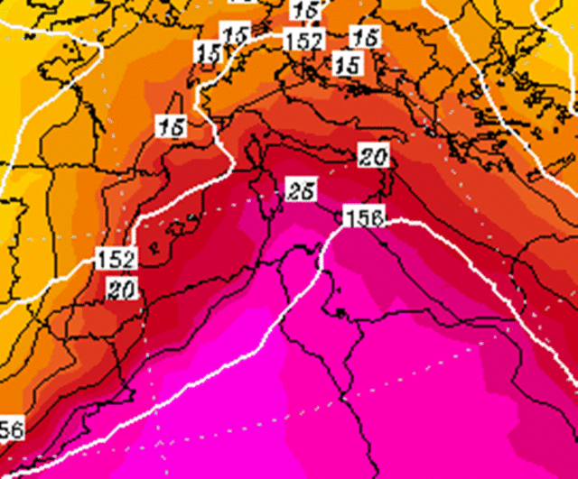 fase “clou” di quest’ondata di caldo, con temperature roventi da Nord a Sud. I valori più elevati si toccheranno in Sardegna, dove potranno essere raggiunti o comunque sfiorati i primi +40°C della stagione. Temperature fino a +37/+38°C in Sicilia, e oltre i +33/+34°C in Calabria, Toscana, Lazio e Campania. Caldo anche in tutte le altre Regioni con picchi di oltre +30°C persino nei fondovalle alpini.