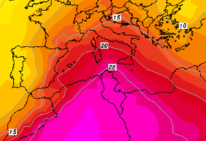 fase “clou” di quest’ondata di caldo, con temperature roventi da Nord a Sud. I valori più elevati si toccheranno in Sardegna, dove potranno essere raggiunti o comunque sfiorati i primi +40°C della stagione. Temperature fino a +37/+38°C in Sicilia, e oltre i +33/+34°C in Calabria, Toscana, Lazio e Campania. Caldo anche in tutte le altre Regioni con picchi di oltre +30°C persino nei fondovalle alpini.