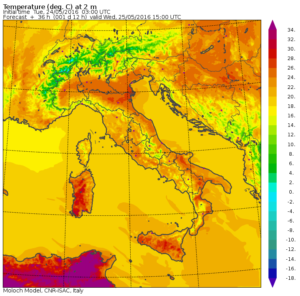on ogni probabilità la giornata più calda, almeno a livello nazionale. Le temperature potranno raggiungere i +40°C in molte località di Sardegna e Sicilia, ma supereranno i +35°C con punte di +36/+37°C su tutto il resto del Centro/Sud, mentre in pianura Padana e nei fondovalle alpini avremo picchi di +34°C. Sarà una giornata caldissima, da “bollino rosso”, al punto che non è da escludere l’abbattimento di qualche record storico stagionale per il mese di maggio. E’ già accaduto sia a marzo che ad aprile, sarebbe davvero clamoroso se una simile circostanza si verificasse per il terzo mese consecutivo.