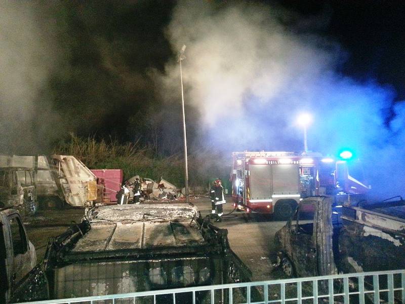 L’incendio è divampato intorno all’una e i vigili del fuoco sono riusciti a spegnerlo sono questa mattina intorno alle ore 7, distrutti 9 autocompattatori