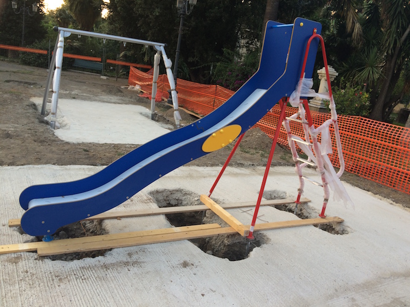 I lavori si stanno svolgendo in questi giorni e alcune delle giostre, come lo scivolo e lo scheletro dell’altalena sono state già installate. Per tutte le altre si sta procedendo con lo scavo delle fondamenta, cui seguirà la posa delle giostrine.