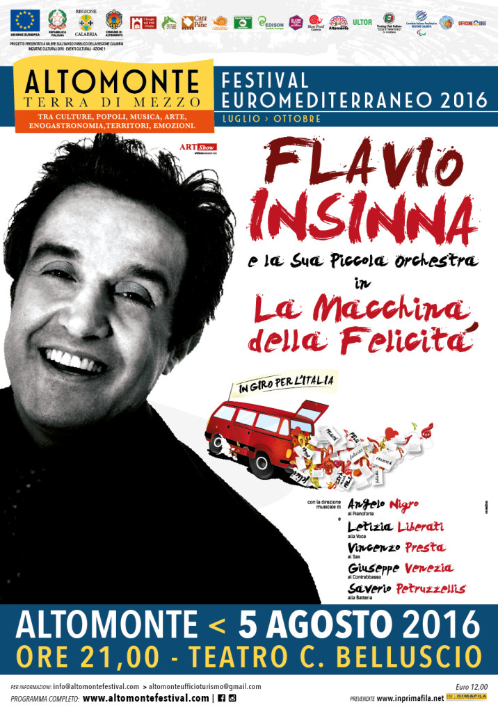 Calabria, venerdì Flavio Insinna in “La Macchina della felicità” al Festival Euromediterraneo 2016