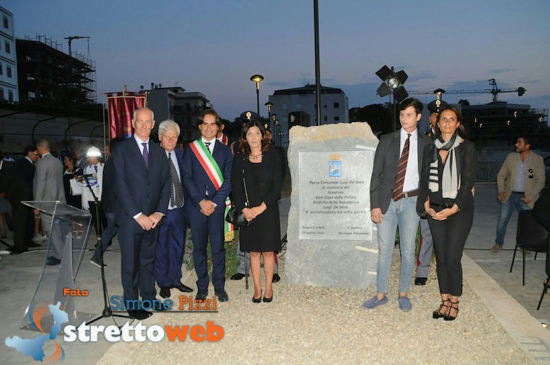 Al parco, che ancora deve essere inaugurato, è stato assegnato il nome del Prefetto, ricordato affettuosamente dal sindaco Giuseppe Falcomatà così come da quanti sono intervenuti fin da stamattina in questa “giornata della memoria” voluta apposta per non dimenticare né l’uomo né il suo operato. Mentre il sole tramontava dietro i palazzi, sorgeva al parco la nuova stele, finalmente libera di essere ammirata, che consacra il luogo a Luigi De Sena. Un luogo che dev’essere un posto per le famiglie, ricorda il sindaco, per i bambini, per gli anziani, un posto di ritrovo frequentato da quanti conoscono già bene il valore della lotta alla ‘ndrangheta e da quanti devono imparare questo stesso valore attraverso esempi, parole ma soprattutto gesti. L’Arcivescovo della Diocesi di Reggio Calabria – Bova, sua Eccellenza Mons. Giuseppe Fiorini Morosini ha quindi benedetto la stele e i presenti, nell’auspicio che la luce della legalità splenda sempre sul parco e su quanti lo frequentano.