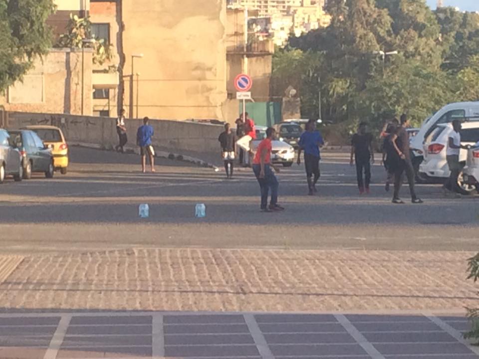 Una ventina di ragazzi di nazionalità straniera aveva allestito liberamente il proprio campetto di calcio dentro il parcheggio, precisamente nel tratto di strada antistante l’ingresso e l’uscita all’area, e hanno giocato liberamente senza essere disturbati, se non da qualche auto. Gli automobilisti, infatti, per uscire dal parcheggio erano costretti a uscire dall’ingresso, rischiando di scontrarsi con altre auto in entrata. Qualcuno ha comunque seguito la strada corretta dell’uscita, rischiando però di investire i ragazzi.