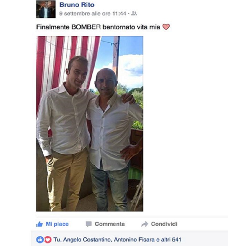 . Sono quelli totalizzati da un post condiviso sulla propria bacheca Facebook dal figlio di un condannato in via definitiva per associazione mafiosa nel processo “Archi-Astrea” e scarcerato in questi giorni dopo aver scontato la pena. A segnalarlo dal proprio profilo è il giornalista e massmediologo Klaus Davi (www.facebook.com/klaus.davi.9?fref=ufi). Bruno Rito, questo è il nome del figlio del boss, si è servito del social network per annunciare la liberazione del padre con un laconico ma plastico post “finalmente Bomber ben tornato vita mia”, accompagnata da una foto che li ritrae insieme, riscuotendo in poche ore centinaia di like. “Non parliamo di uno stinco di santo”, spiega Klaus Davi. “Alberto Rito è ritenuto uno degli elementi più importanti della cosca Tegano. Nel 1992 è stato destinatario di un’ordinanza di custodia cautelare in carcere per associazione mafiosa, si è reso irreperibile fino al 13 maggio 1993. Un anno dopo, è stato raggiunto da una nuova ordinanza di custodia cautelare, sempre per il reato di 416 bis. Mentre, dopo essere stato indagato anche nel procedimento “Olimpia”, è stato condannato in via definitiva per i reati di porto e detenzione illegale di armi e munizionamento nel processo “Latella +91”. Come riportato dagli atti giudiziari che lo riguardano – prosegue il massmediologo – Rito è considerato elemento socialmente pericoloso, lo stesso annovera precedenti specifici per gravissimi reati, fra cui – oltre all’associazione mafiosa – anche tentato omicidio doloso in concorso, estorsione, furto, rapina. Rito – è scritto nel capo d’imputazione – è stato e lo è tutt’ora coinvolto in attività di supporto alle azioni criminali della cosca, forte del ruolo acquisito per aver preso parte, durante la seconda guerra di mafia, a numerose condotte delittuose insieme a Giorgio Benestare, di cui è uomo di fiducia”, ha aggiunto Davi.
