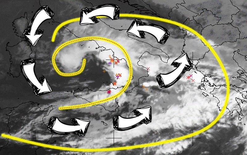 Meteo Calabria e Sicilia- L’atteso ciclone foriero di forte maltempo è arrivato, come ampiamente previsto, anche nelle Regioni del Sud, dopo aver provocato bombe d’acqua al Centro Italia nella notte. In Toscana le situazioni più critiche con danni e disagi provocati da nubifragi con punte di 100mm di pioggia nel fiorentino e nel pistoiese. Poi il maltempo s’è spostato sul Lazio, dove spiccano i 61mm di pioggia caduti ad Anzio, e adesso si sta abbattendo sull’estremo Sud, tra Campania (specie meridionale, nel Cilento in provincia di Salerno), Calabria tirrenica e Sicilia nord/orientale. Nel corso della giornata, infatti, il maltempo si estenderà a gran parte di Calabria e Sicilia, oltre che al Salento, con forti piogge soprattutto tra cosentino, crotonese e catanzarese, per la “ritornante” da nord/est del ciclone che si abbatterà duramente sulla Calabria con violenti nubifragi. Le temperature crolleranno in alcuni casi di oltre 10°C rispetto ai valori di ieri, è quindi molto probabile la formazione di numerosi tornado e di forti grandinate durante i temporali più intensi. Consigliamo prudenza e cautela negli spostamenti.