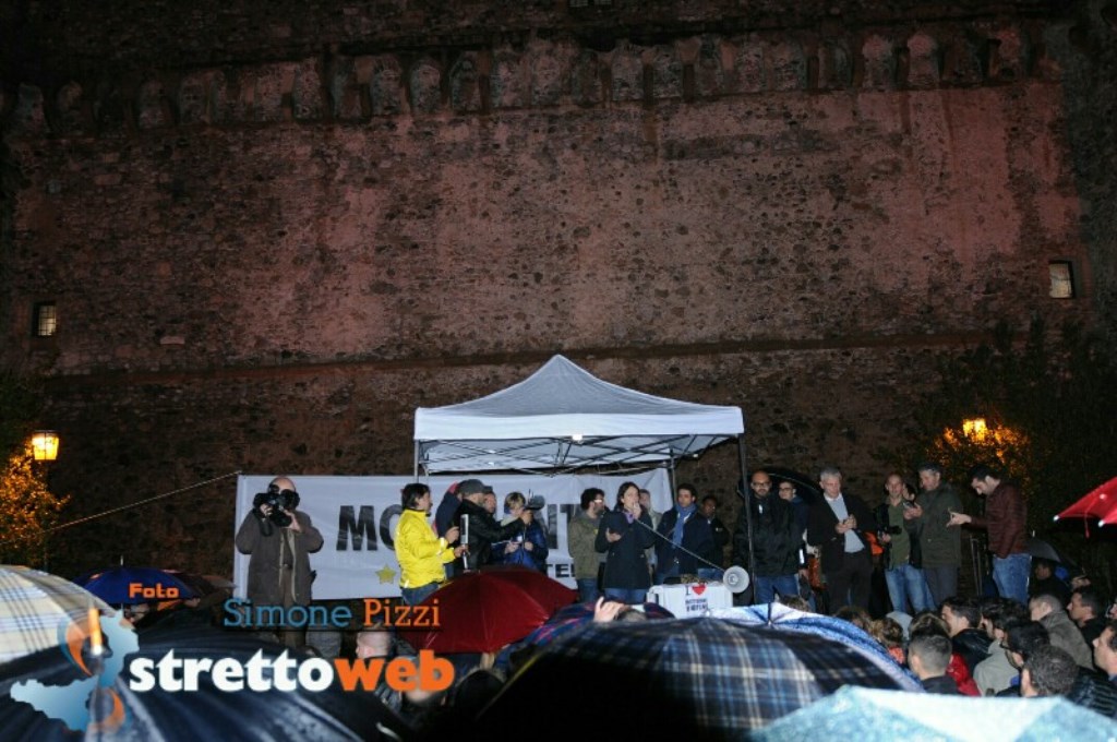 Nonostante questo i protagonisti non si sono fermati, con le torce dei cellulari e con gli ombrelli aperti hanno assistito alla manifestazione. Molto interessanti le parole di Di Battista. Ecco tutte le immagini, le interviste, i video e le foto: