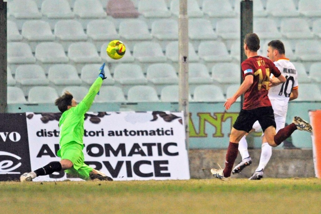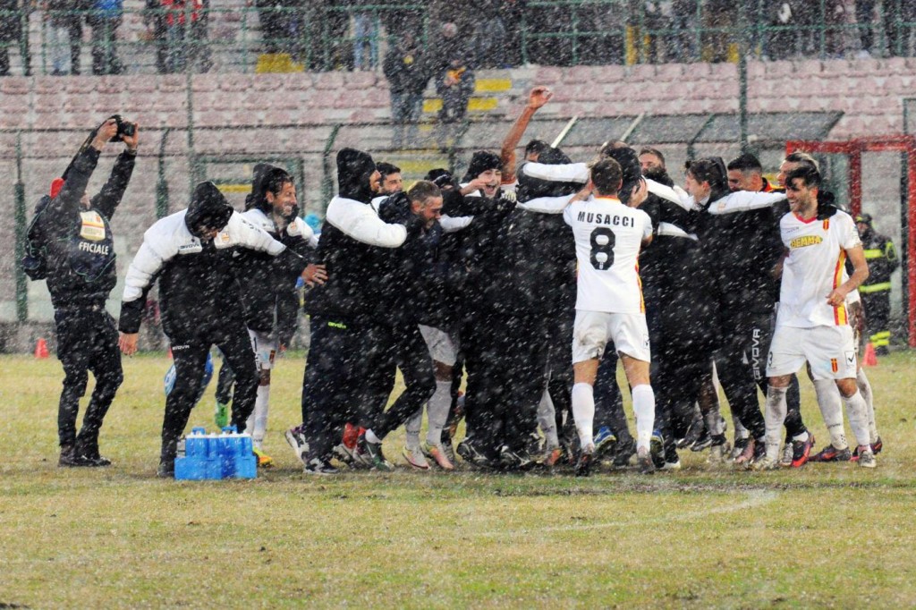 La cronaca della partita – Nella prima frazione parte forte il Messina: al 2′ i peloritani cercano di rendersi pericolosi, al 5′ calcio di punizione che non impensierisce Sala, al 7′ tiro di Madonia non pericoloso. Prima occasione per la Reggina al 15′ con De Francesco: tiro a lato. Al 18′ la squadra di Zeman sfiora il vantaggio con Porcino, il quale calcia alto a pochi metri dalla porta. Al 22′ tiro di Pozzebon, Sala respinge. Ancora il portiere della Reggina protagonista su Madonia. Al 27′ il Messina sfiora il goal: il palo nega la gioia agli infreddoliti tifosi di casa. Finale di primo tempo con un forte forcing della squadra di Lucarelli ma la palla non entra. Il Messina si meriterebbe di essere in vantaggio in questa prima frazione: ha creato tante occasioni da goal e preso un palo, Reggina non pervenuta. Nel secondo tempo subito amaranto in avanti con De Francesco che però spara alto. La squadra calabrese sfiora il vantaggio con Bangu al 58′: palla che si infrange sull’esterno della rete. Al 73′ la svolta della gara: il Messina in vantaggio con Bruno, batti e ribatti in area di rigore il difensore peloritano insacca. La Reggina non riesce a reagire ed i siciliani ne approfittano: all’82’ raddoppio di Milinkovic con un bel tiro ad incrociare. All’84’ espulso Bangu: giornata nera per i reggini. Il Messina rischia di dilagare mentre al San Filippo inizia a nevicare: Pozzebon si divora il tris all’87’. La partita scivola via senza più sussulti: i tifosi del Messina (appena 2.364 spettatori (dato ufficiale), mai un Derby dello Stretto aveva avuto in cento anni di storia una cornice di pubblico così esigua) possono far festa.