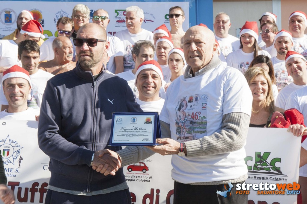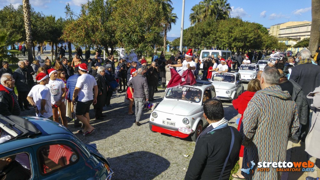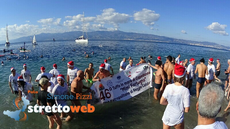 Si è svolto in tarda mattinata il tradizionale tuffo in mare di Capodanno a Reggio Calabria. Organizzata dall’ass. Febiadi no-profit, con il patrocinio del Comune di Reggio Calabria, l’iniziativa è giunta alla 46esima edizione, ed è intitolata al suo ideatore, scomparso nel 2013, Comm. Demetrio Fortugno, per gli amici Mimì Fortugno. Alla manifestazione ha partecipato il Circolo Velico Reggio Calabria ed il Canoa Kayak Club Reggio Calabria. Tanti sono stati i tuffatori di varie età, estrazione sociale e provenienza, che sono entrate nelle acque fredde del Lido Comunale di Reggio Calabria. La mattinata è stata impreziosita dal 4° raduno Nazionale di Capodanno delle Fiat 500.