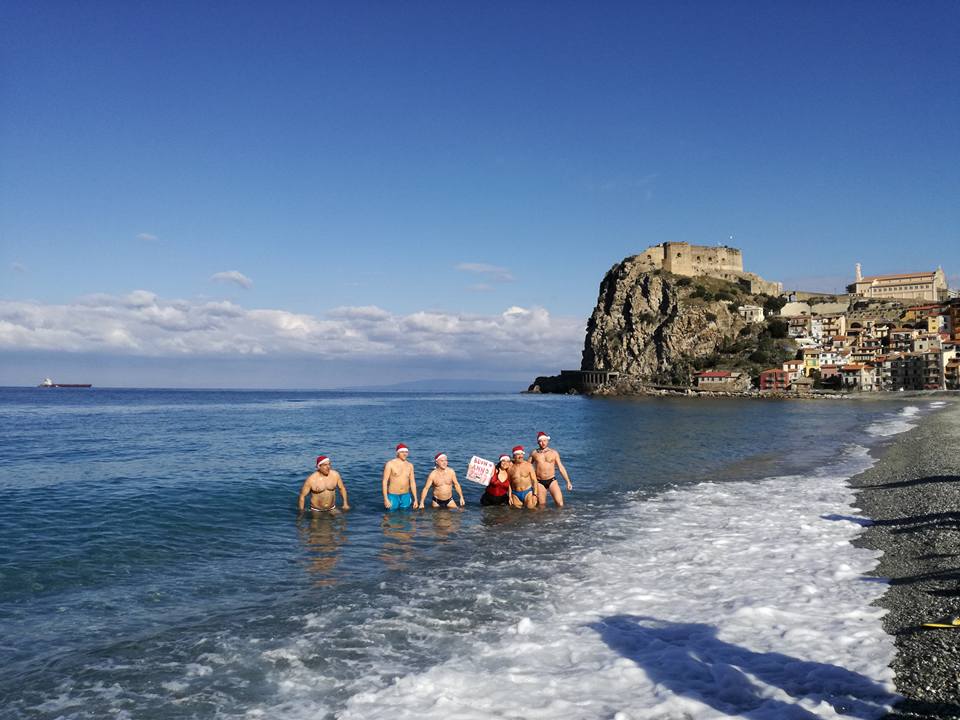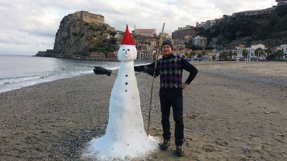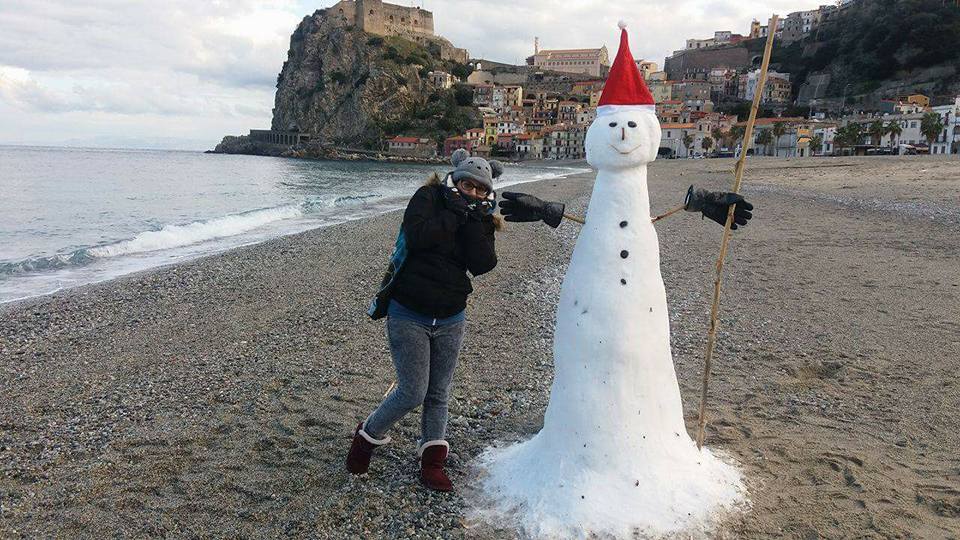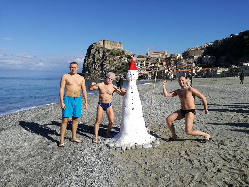 Capodanno, un susseguirsi di pranzi e cene, giochi da tavolo e di carte in compagnia, veglioni in discoteca, aspettando l’alba con amici o parenti; sono i classici modi per trascorrere in modo tradizionale questa festività. Ma quest’anno a Scilla si è trovato un modo un po’ “diverso”, utilizzando le ore di veglia, partendo alle 4 del mattino, per andare a caccia di neve sulle montagne del circondario scillese. Alcuni ragazzi dalla mirabile iniziativa infatti, hanno adoperato al meglio le caratteristiche millenarie di cui si vanta questa terra, cioè le temperature relativamente miti invernali, la vicinanza del mare e la vicinanza delle montagne. Già da alcuni anni ci si è avvicinati gradualmente alla pratica del bagno in mare invernale, sfatando la convinzione che ciò fosse fonte di raffreddori o altri malanni. Quest’anno, tanto per rendere il Capodanno e il relativo bagno a mare unico e particolare, alcuni volenterosi hanno effettuato una spedizione nelle vicine montagne a caccia di neve. Scopo della missione, recuperare una quantità di neve sufficiente per costruire un pupazzo di neve in riva al mare, arricchendo la baia di Scilla di una attrattiva fuori dal comune e avvicinare due cose che apparentemente non potrebbero coesistere: il bagno in mare con la neve della montagna.