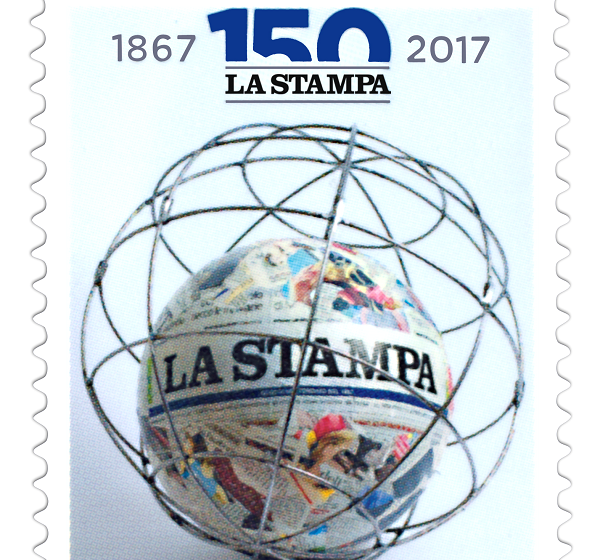 Il Ministero dello Sviluppo Economico emetterà, giovedì 9 febbraio, un francobollo ordinario appartenente alla serie tematica “le Eccellenze del sistema produttivo ed economico” dedicato al quotidiano “La Stampa”, nel 150° anniversario della fondazione. Il francobollo, del valore di € 0,95, è stampato dall’Istituto Poligrafico e Zecca dello Stato S.p.A., in rotocalcografia, su carta bianca, patinata neutra, autoadesiva, non fluorescente, in sei colori e con una tiratura di ottocentomila esemplari. La vignetta, opera del bozzettista Michelangelo Pistoletto, raffigura una sfera formata da una struttura metallica, entro la quale è racchiuso un globo tappezzato dai ritagli di un quotidiano su cui campeggia la testata de “La Stampa”. In alto è riprodotto il logo del centocinquantesimo anniversario della fondazione del quotidiano piemontese. Completano il francobollo le date “1867 2017”, la scritta “ITALIA” e il valore “€ 0,95”. A commento dell’emissione è stato realizzato un bollettino illustrativo con articolo a firma di Maurizio Molinari, Direttore de La Stampa. Lo “Spazio Filatelia” di Torino, sito in Via Alfieri 10, utilizzerà, il giorno di emissione, l’annullo speciale realizzato da Filatelia di Poste Italiane. Il francobollo ed i prodotti filatelici correlati saranno disponibili presso gli Uffici Postali abilitati, gli “Spazio Filatelia” di Roma, Milano, Venezia, Napoli, Trieste, Torino, Genova e sul sito poste.it.