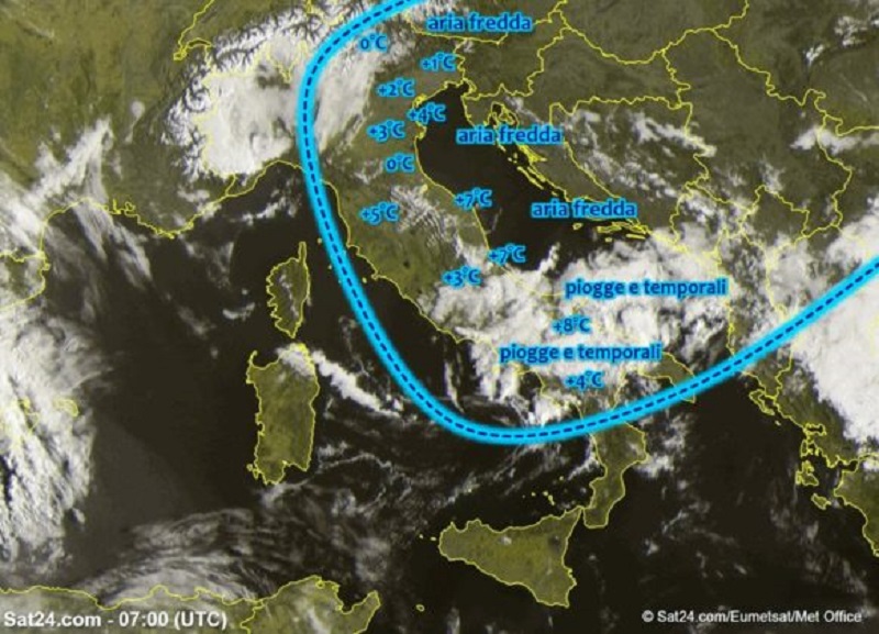 Allerta Meteo, il fronte freddo del colpo di coda dell’inverno si sposta al Sud: la situazione in diretta