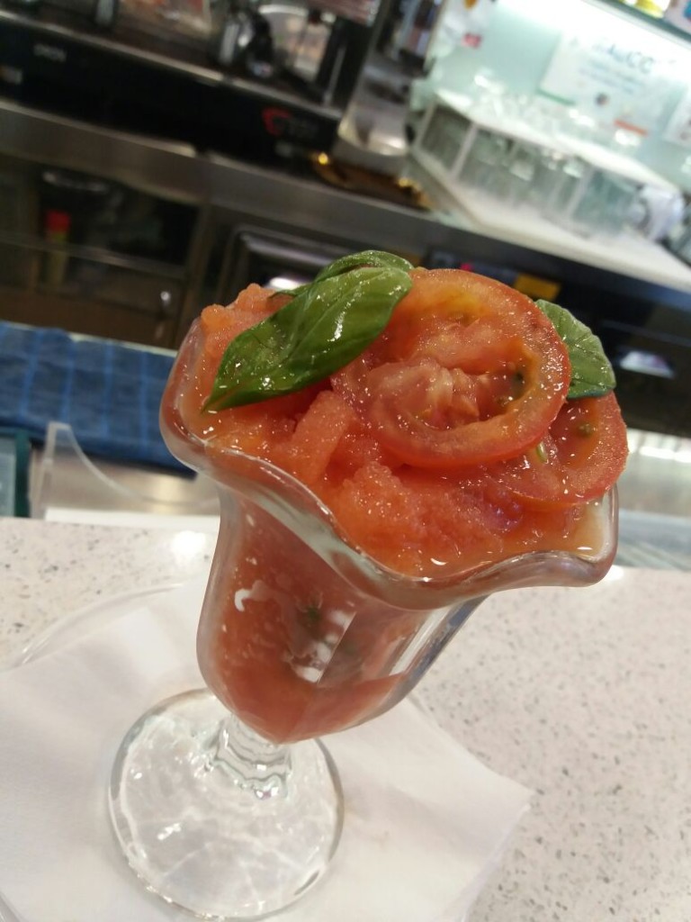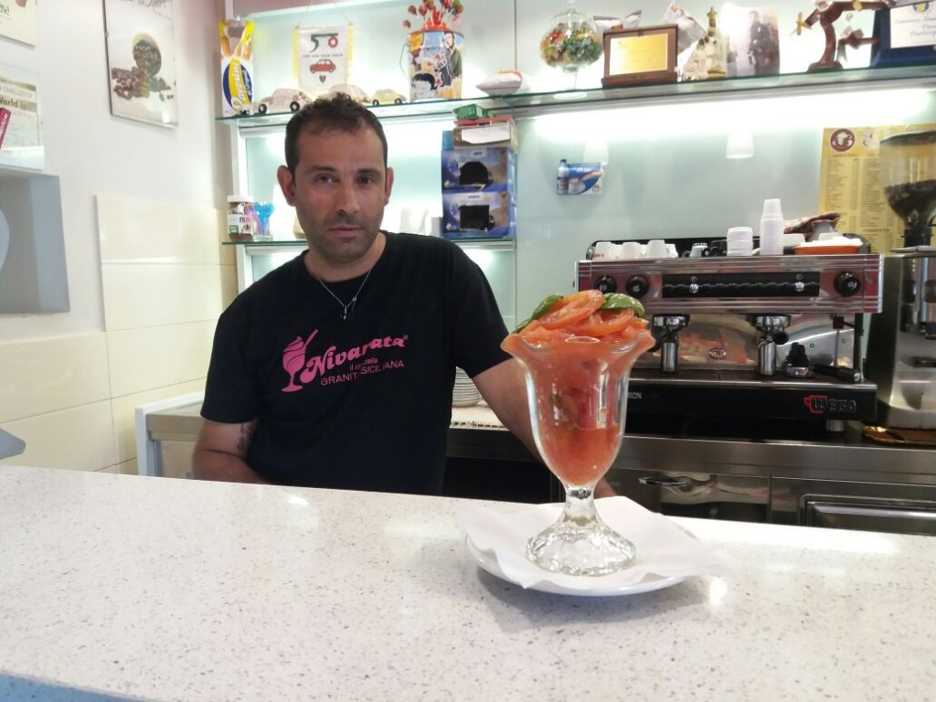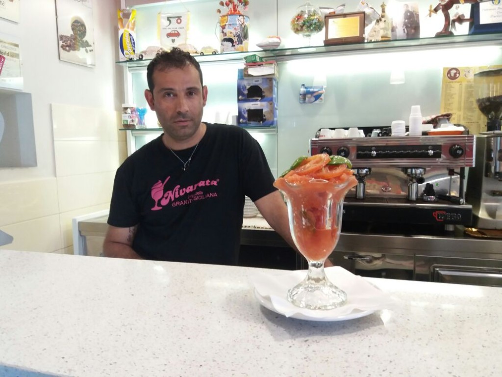 Non smette di sorprendere il mastro gelataio più estroso di Messina, Giuseppe Arena. L’ultima volta che l’abbiamo incontrato nel suo bar in via Garibaldi, ci aveva deliziato con la sua pasticceria gastronomica e il gusto particolare del gelato “Cozze e Vongole”. Nel suo bancone, accanto ai tradizionali gusti della gelateria, tra cui l’ormai immancabile “Italico”, spiccavano in bella mostra quelli al gusto Gongorzola e al Pecorino Romano, al Pane integrale e ai Frutti di Mare. Stavolta il nostro Giuseppe ha deciso di conquistare i palati più esigenti con una rivisitazione in chiave gastronomica della granita: ed ecco che nasce l’idea della granita al gusto pomodoro, accompagnata da qualche fogliolina di basilico. Con le telecamere di StrettoWeb siamo andati da Giuseppe a scoprire i dettagli di questa nuova ricetta, contenuti nella video intervista che vi riportiamo di seguito: