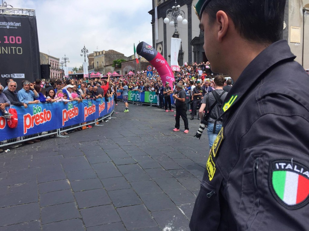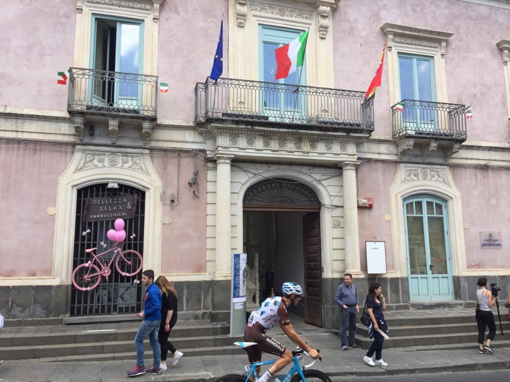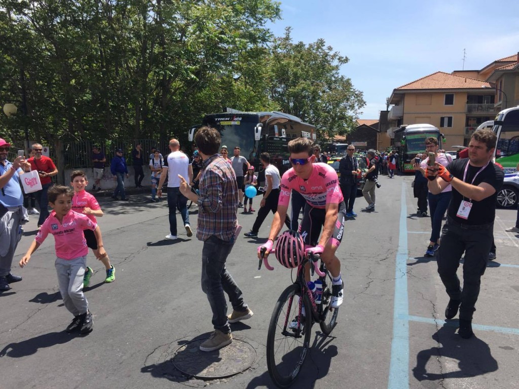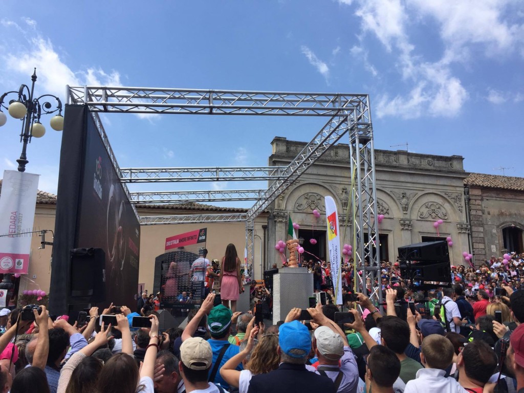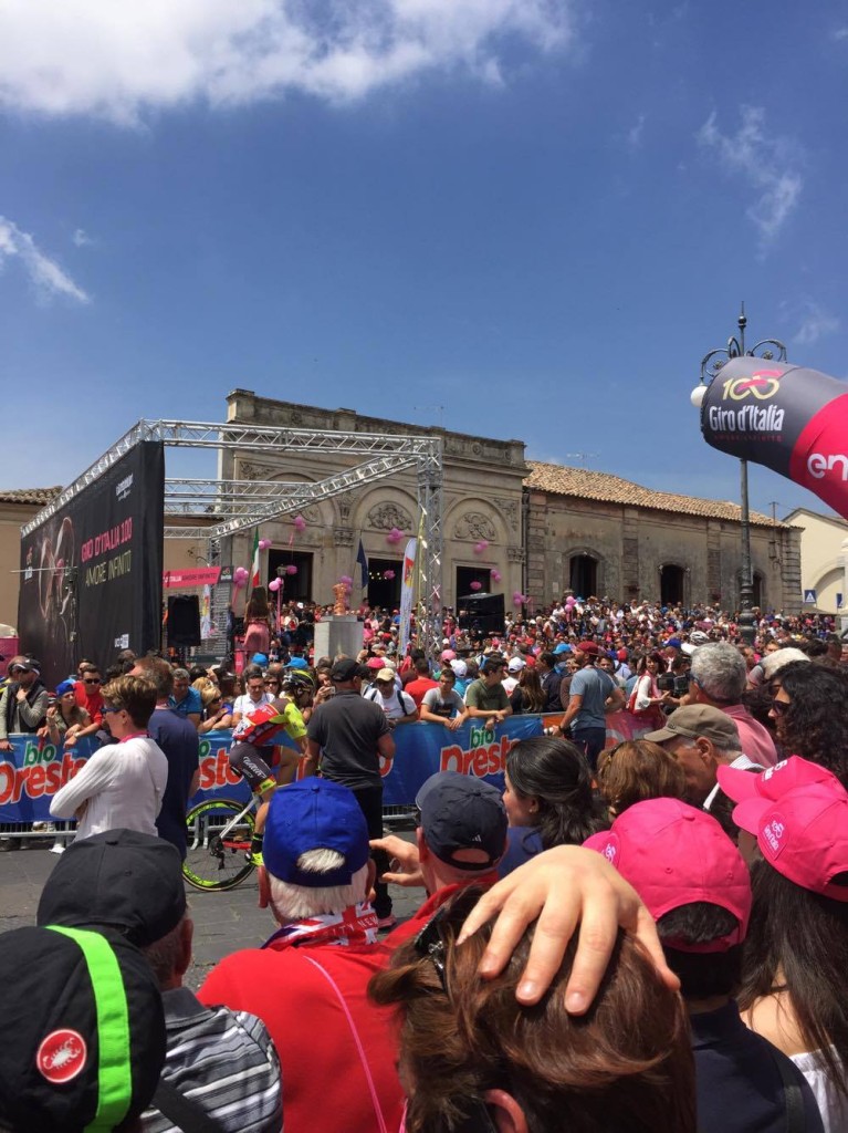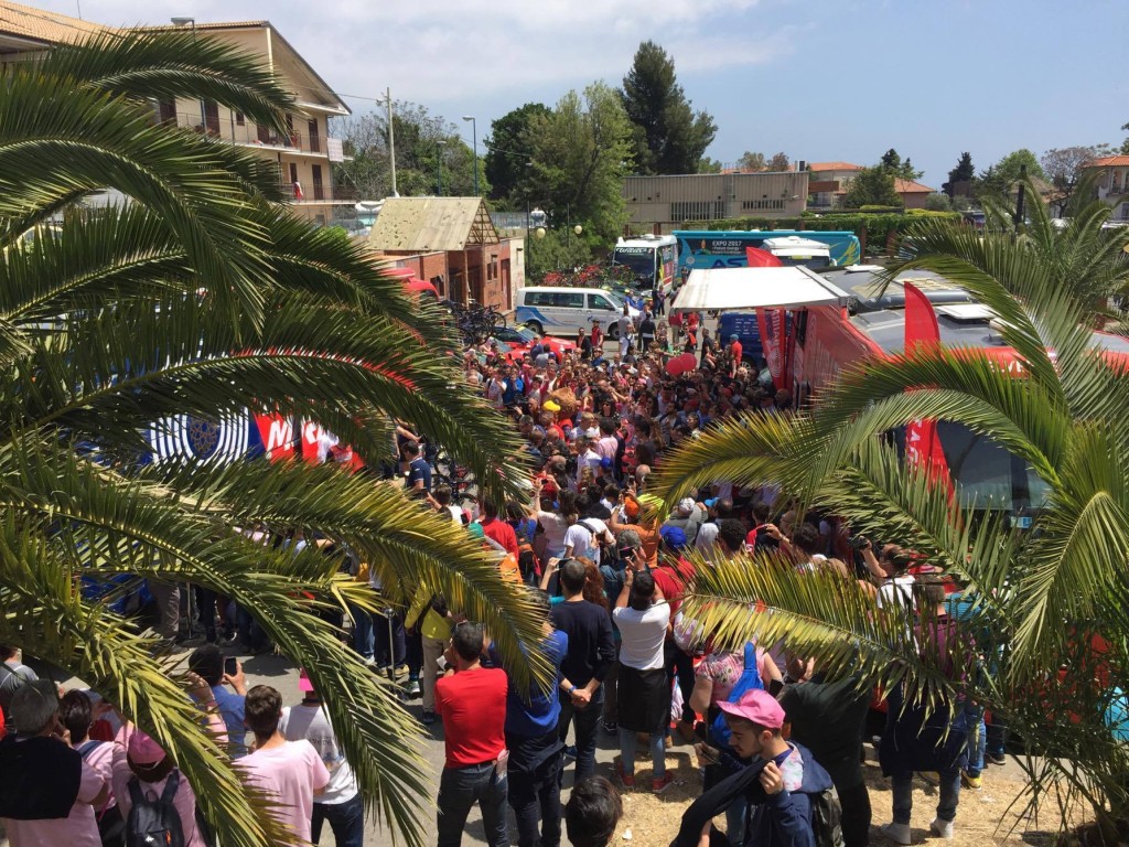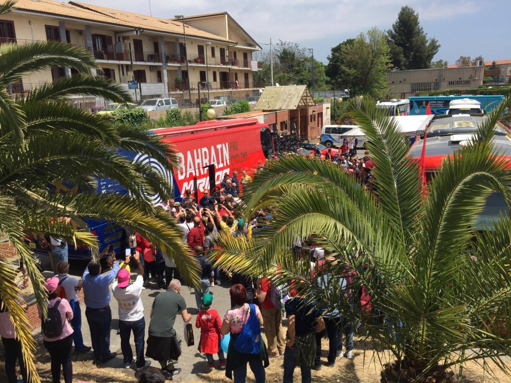 Sta partendo proprio in questi minuti la quinta tappa del giro d’italia che oggi arriverà a Messina. Grande festa alle falde dell’Etna nel centro abitato di Pedara per il gruppo di corridori che si è avvicinato al foglio firma letteralmente tra due ali di folla, diverse migliaia di persone hanno riempito il centro storico della città etnea, tributando il loro omaggio ai corridori e a tutto il gruppo ma soprattuto allo squalo dello Stretto, Vincenzo Nibali, autentico beniamino di casa, tanti gli striscioni per lui ma soprattutto tantissimi tifosi che hanno assediato il pullman del team Bahrain Merida sin dalle prime ore del mattino.