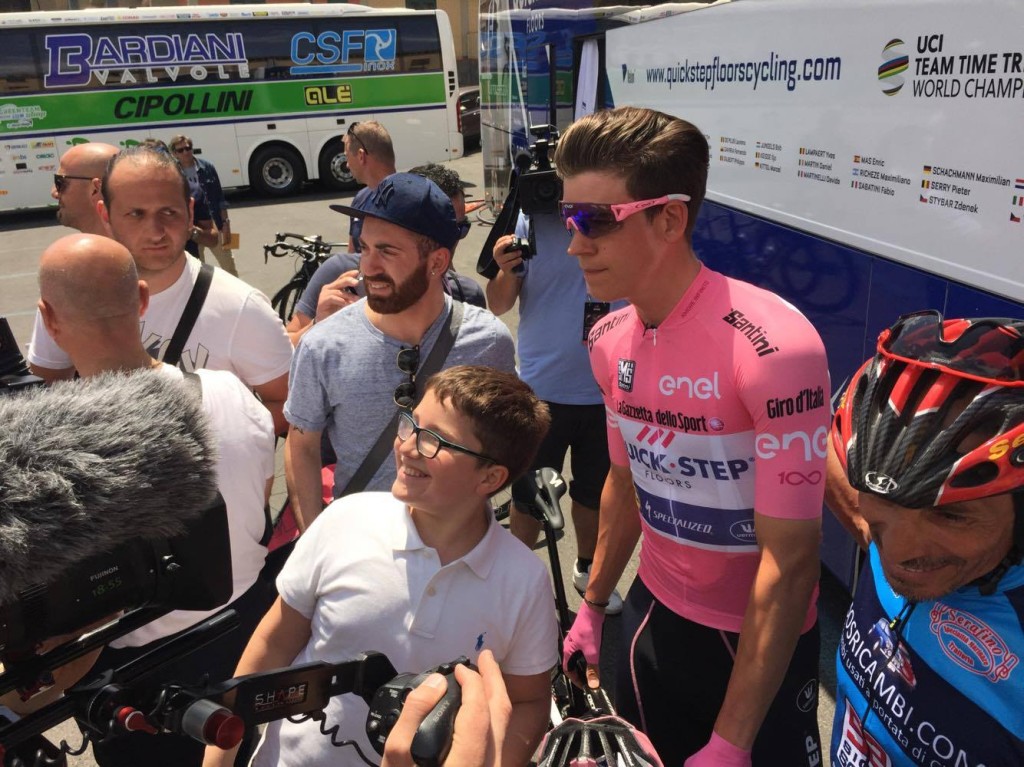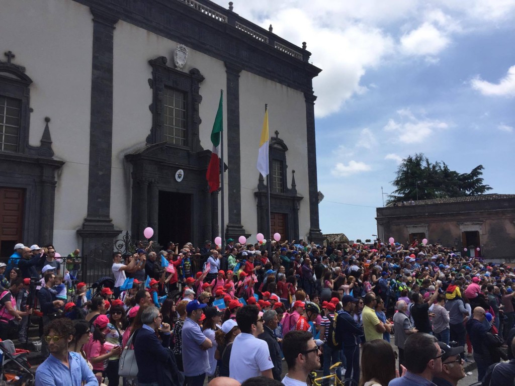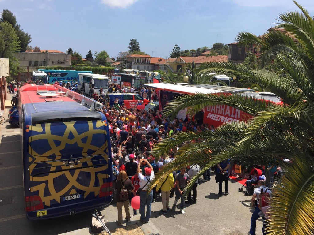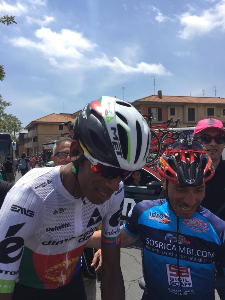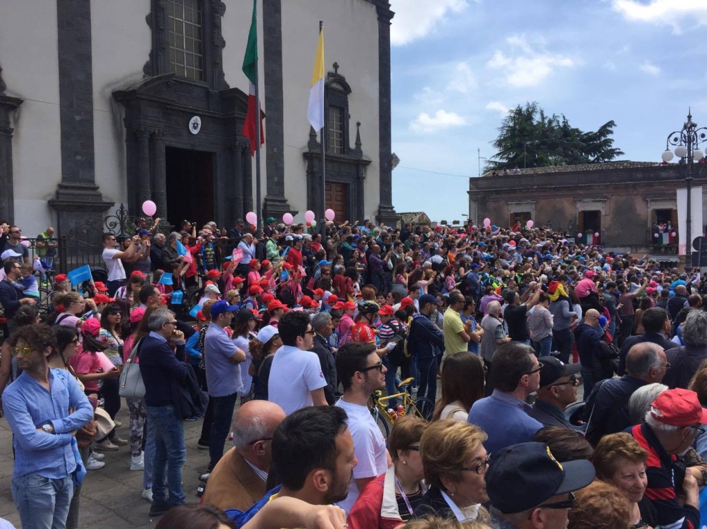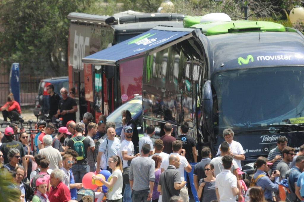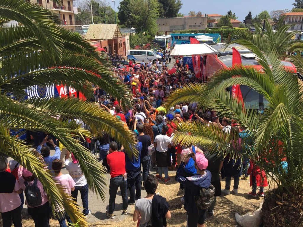 Sta partendo proprio in questi minuti la quinta tappa del giro d’italia che oggi arriverà a Messina. Grande festa alle falde dell’Etna nel centro abitato di Pedara per il gruppo di corridori che si è avvicinato al foglio firma letteralmente tra due ali di folla, diverse migliaia di persone hanno riempito il centro storico della città etnea, tributando il loro omaggio ai corridori e a tutto il gruppo ma soprattuto allo squalo dello Stretto, Vincenzo Nibali, autentico beniamino di casa, tanti gli striscioni per lui ma soprattutto tantissimi tifosi che hanno assediato il pullman del team Bahrain Merida sin dalle prime ore del mattino.