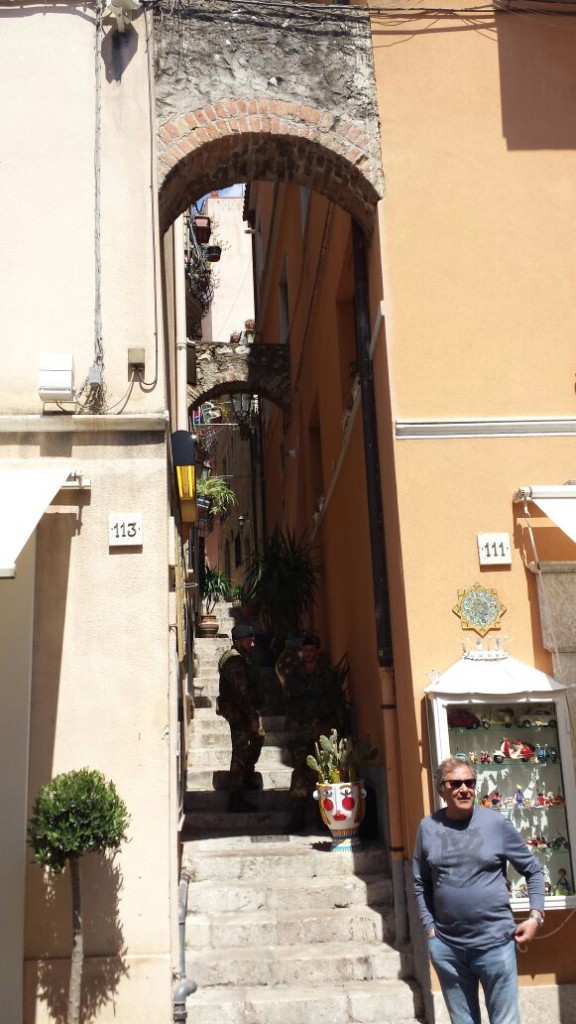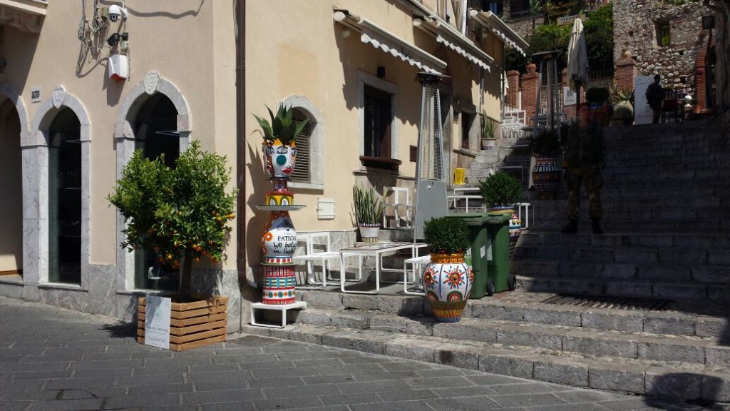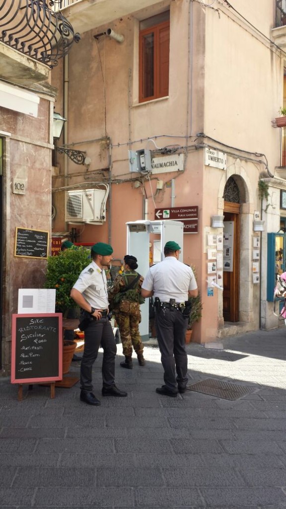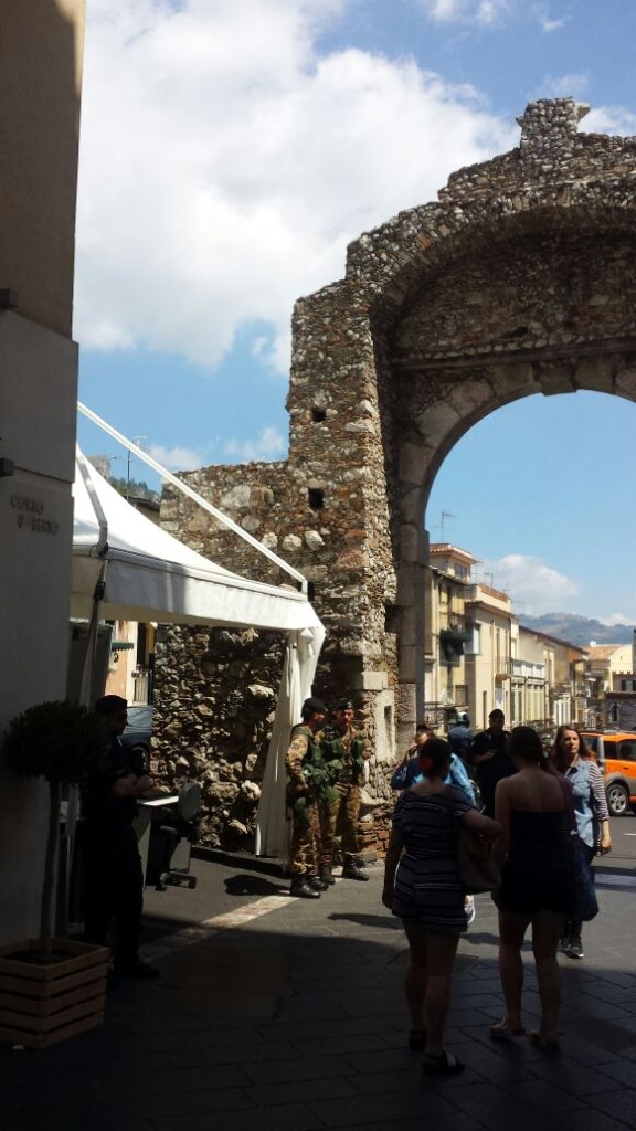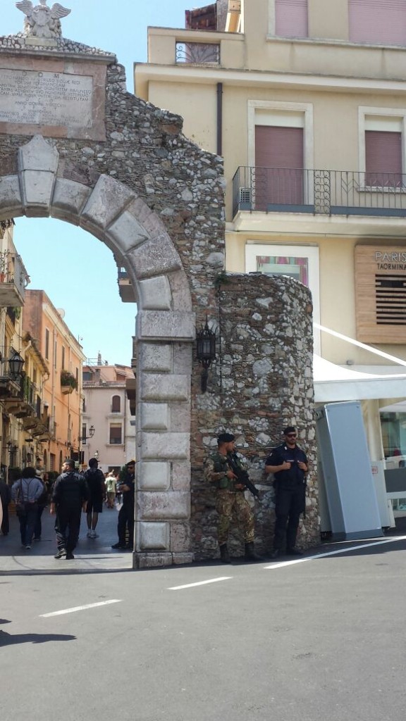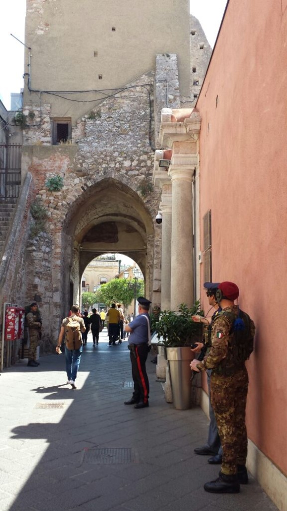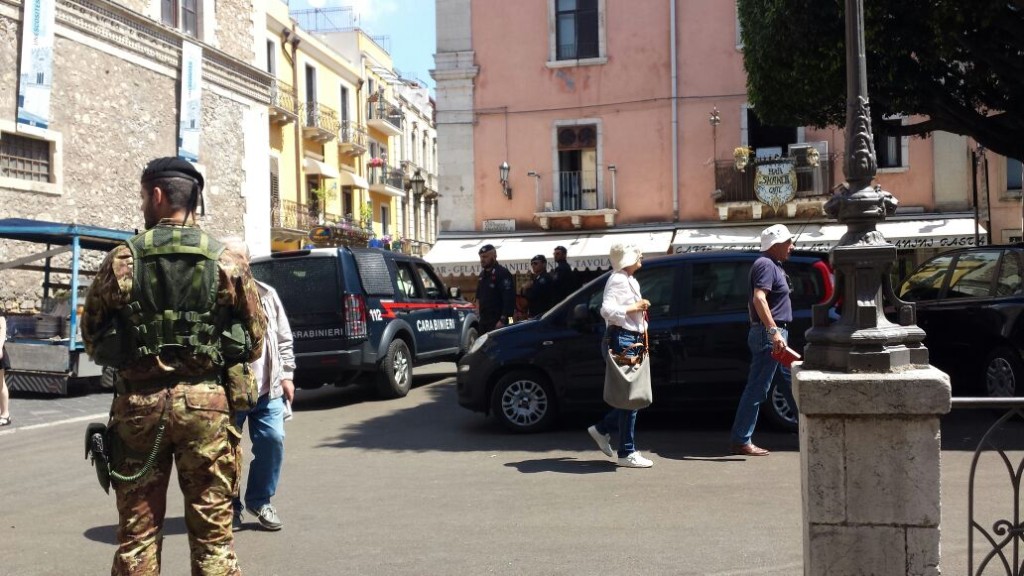 Ma come vive Taormina questa ‘ingombrante’ attesa? Male, a quanto si evince facendo una passeggiata tra i negozi di Corso Umberto. Vicoli presidiati da militari e carabinieri, Hotel piantonati a vista ed esercito che controlla tutte le entrate in città. La massima allerta, però, partirà alle 00.01 di lunedì 22 maggio, da quel momento in poi nessun turista potrà mettere piede nel perimetro delimitato dai militari. Turismo bandito per una settimana a Taormina, tutto ciò che muove l’economia della cittadina siciliana viene fermato per dare spazio ai capi di Stato. Parcheggi chiusi per essere utilizzati dai mezzi militari, prenotazioni degli hotel cancellate per 9 giorni e interruzione del servizio internet proprio in concomitanza dei lavori del G7. Come se non bastasse, a subire le conseguenze di questa importante riunione mondiale saranno anche i cittadini residenti a Taormina, i quali dovranno lasciare le proprie automobili fuori città per non creare intralcio alle forze dell’ordine. E per chi lavora a Taormina ma vive nei paesi limitrofi? Niente paura, basterà lasciare l’auto presso Giardini Naxos o Letojanni, da lì poi saranno le camionette dei carabinieri ad accompagnare i pendolari presso i propri uffici o i propri esercizi. Da mezzanotte scatterà l’ora X, Taormina si prepara a vivere una delle settimane più difficili del suo recente passato.