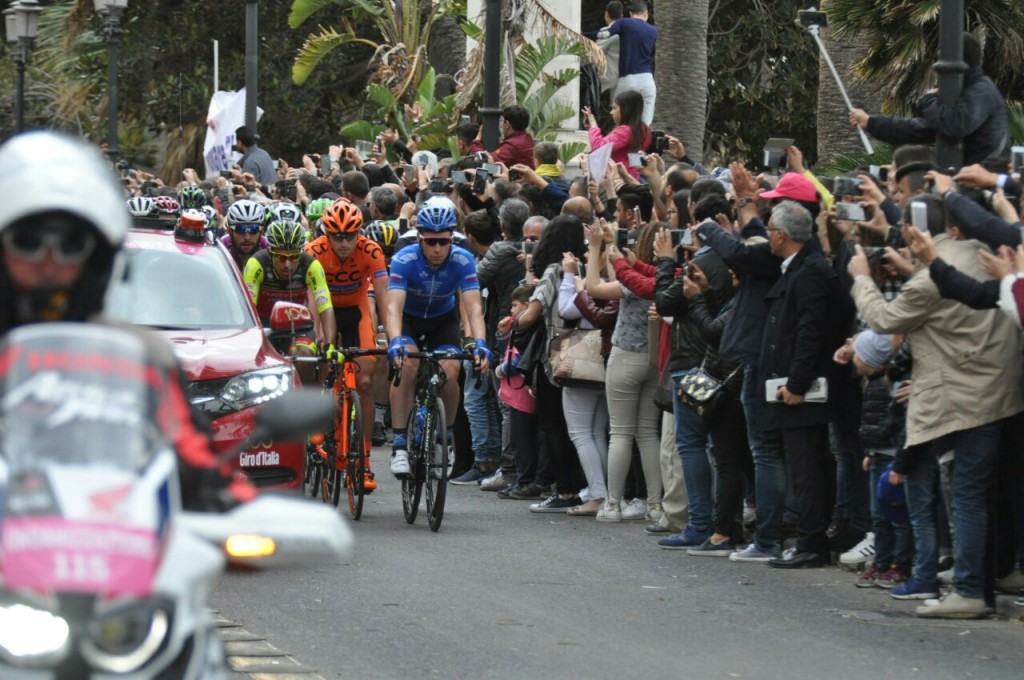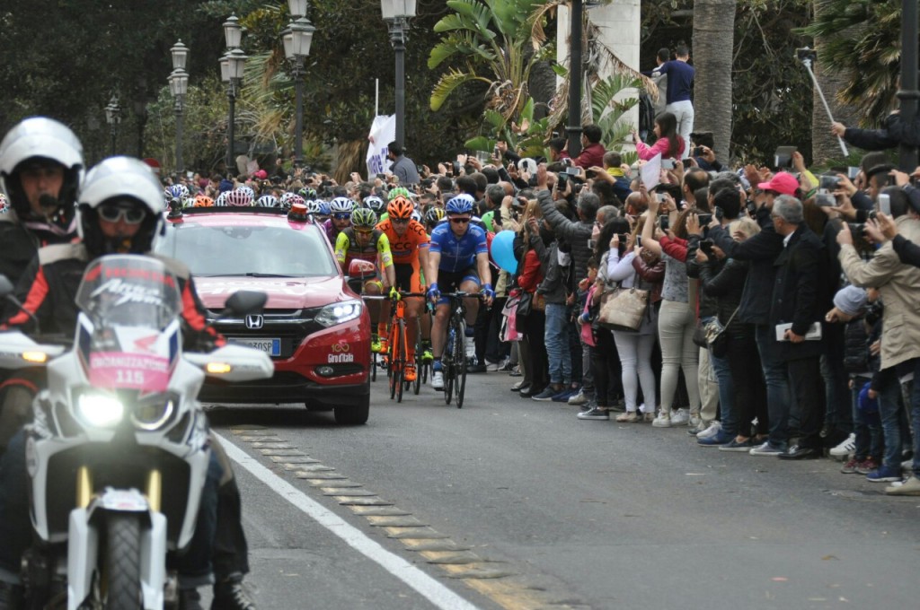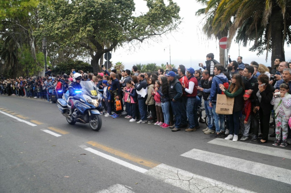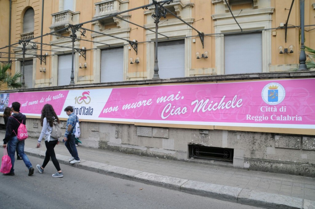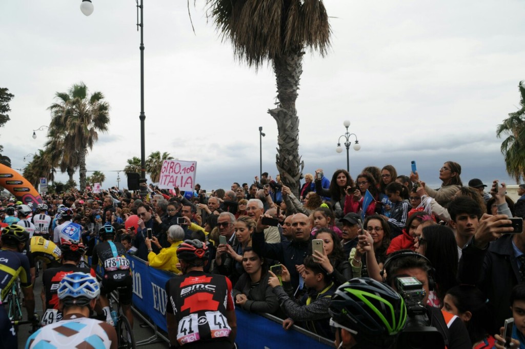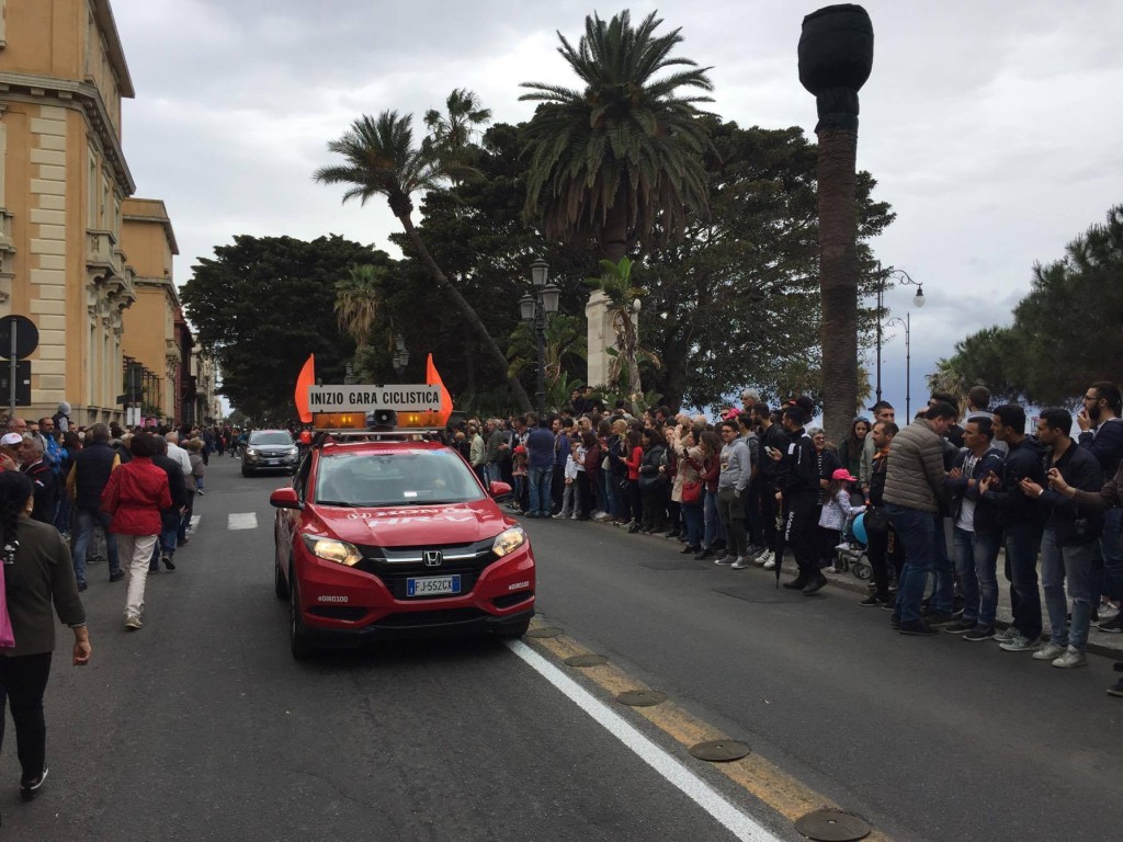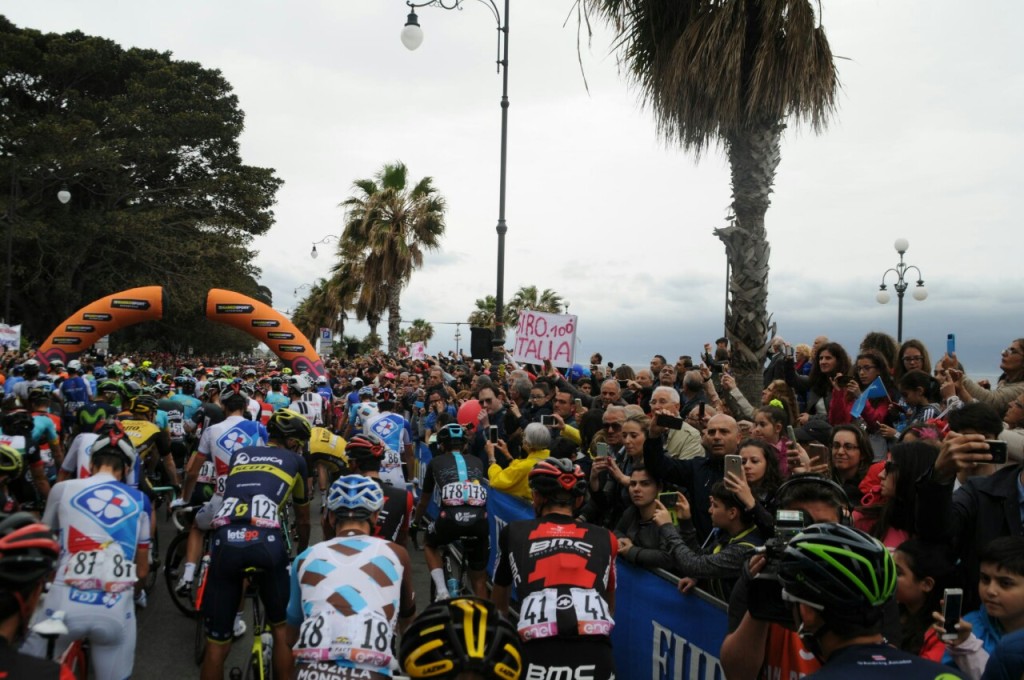 Spettacolare “sfilata” per il Giro d’Italia a Reggio Calabria: stamattina per oltre due ore la città ha avuto una straordinaria vetrina promozionale in mondovisione grazie alla corsa ciclistica giunta quest’anno alla 100ª edizione. La 6ª tappa è partita con un po’ di ritardo a causa di un disguido particolarmente imbarazzante nella zona delle squadre, ma la città ha risposto in modo positivo creando due vere e proprie “ali” di folla intorno al percorso del gruppo, che ha sfilato in tutto il centro cittadino prima di arrivare al “chilometro zero”, situato ad Archi. Tanti applausi per i corridori in gruppo, grande festa con la carovana. Nonostante il cielo nuvoloso e il forte vento di scirocco potessero demoralizzare qualcuno, tantissima gente s’è riversata in strada per abbracciare i campioni su due ruote. Numerosi gli striscioni per Vincenzo Nibali, il messinese più amato a Reggio Calabria, l’unico ad aver davvero unito lo Stretto, e per il compianto Michele Scarponi.