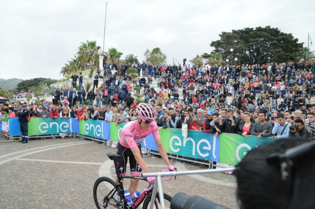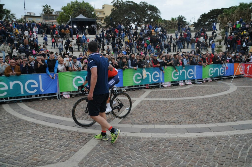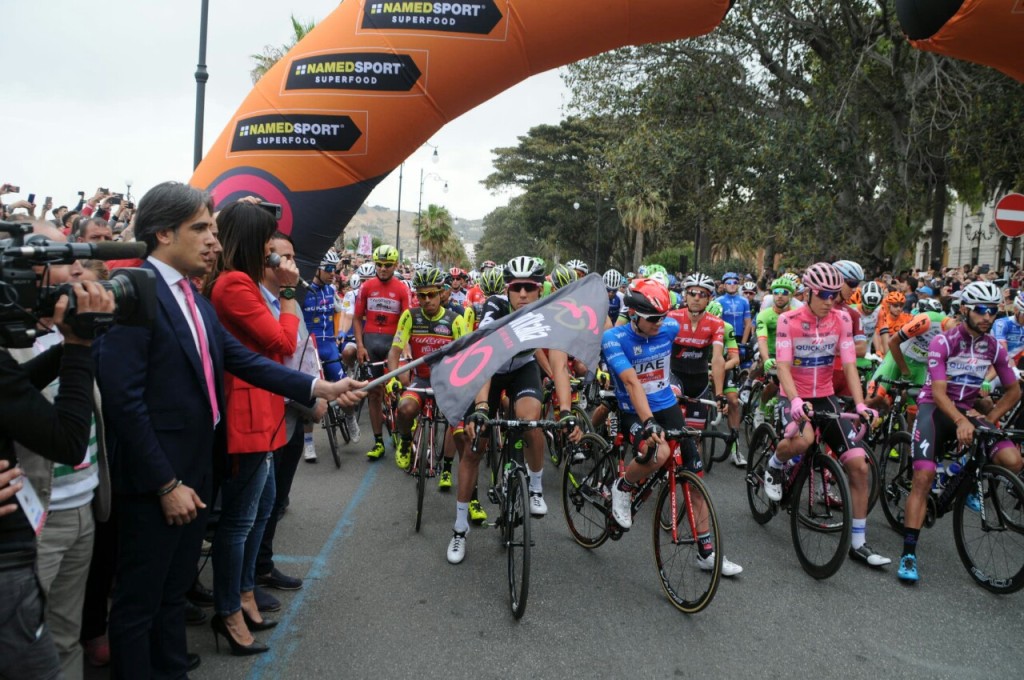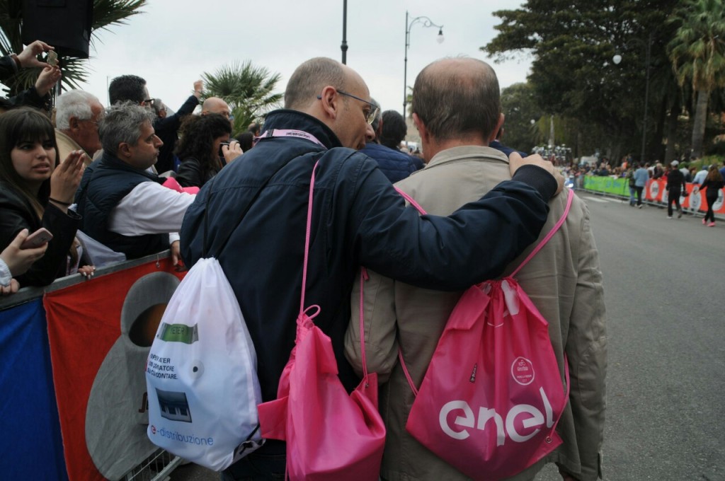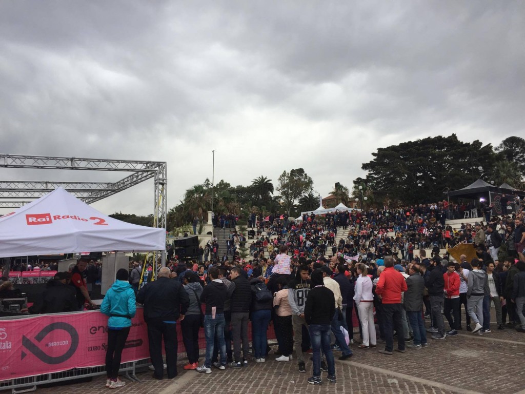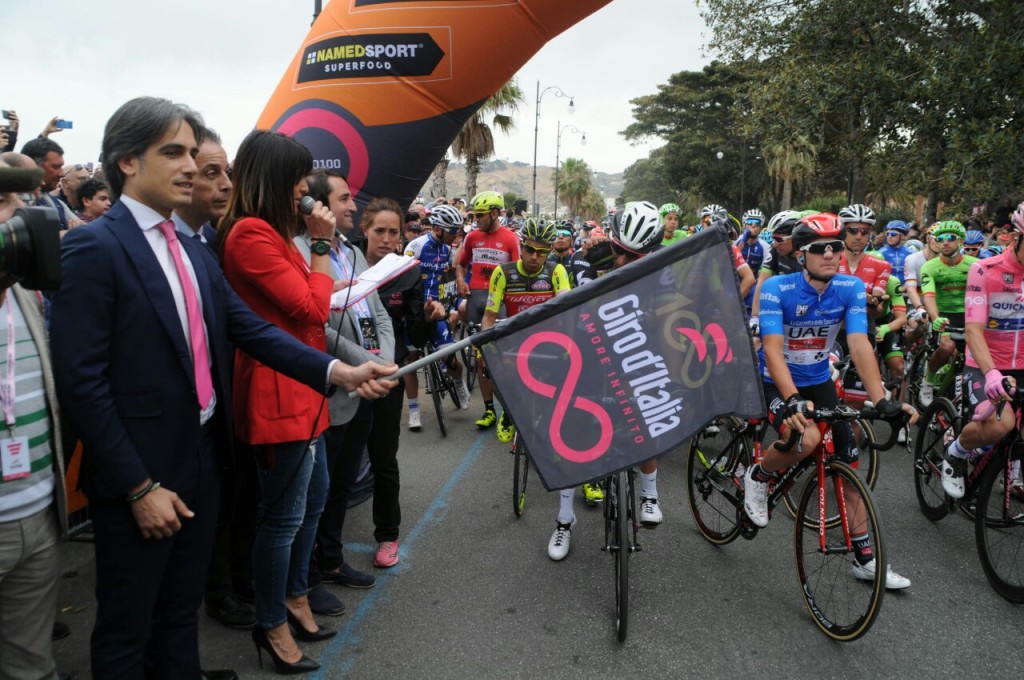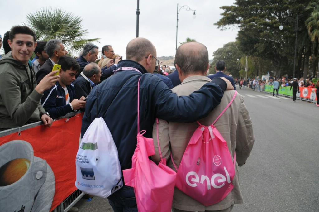 Spettacolare “sfilata” per il Giro d’Italia a Reggio Calabria: stamattina per oltre due ore la città ha avuto una straordinaria vetrina promozionale in mondovisione grazie alla corsa ciclistica giunta quest’anno alla 100ª edizione. La 6ª tappa è partita con un po’ di ritardo a causa di un disguido particolarmente imbarazzante nella zona delle squadre, ma la città ha risposto in modo positivo creando due vere e proprie “ali” di folla intorno al percorso del gruppo, che ha sfilato in tutto il centro cittadino prima di arrivare al “chilometro zero”, situato ad Archi. Tanti applausi per i corridori in gruppo, grande festa con la carovana. Nonostante il cielo nuvoloso e il forte vento di scirocco potessero demoralizzare qualcuno, tantissima gente s’è riversata in strada per abbracciare i campioni su due ruote. Numerosi gli striscioni per Vincenzo Nibali, il messinese più amato a Reggio Calabria, l’unico ad aver davvero unito lo Stretto, e per il compianto Michele Scarponi.
