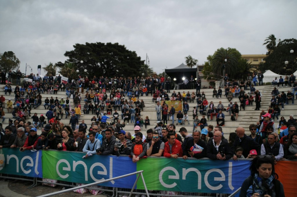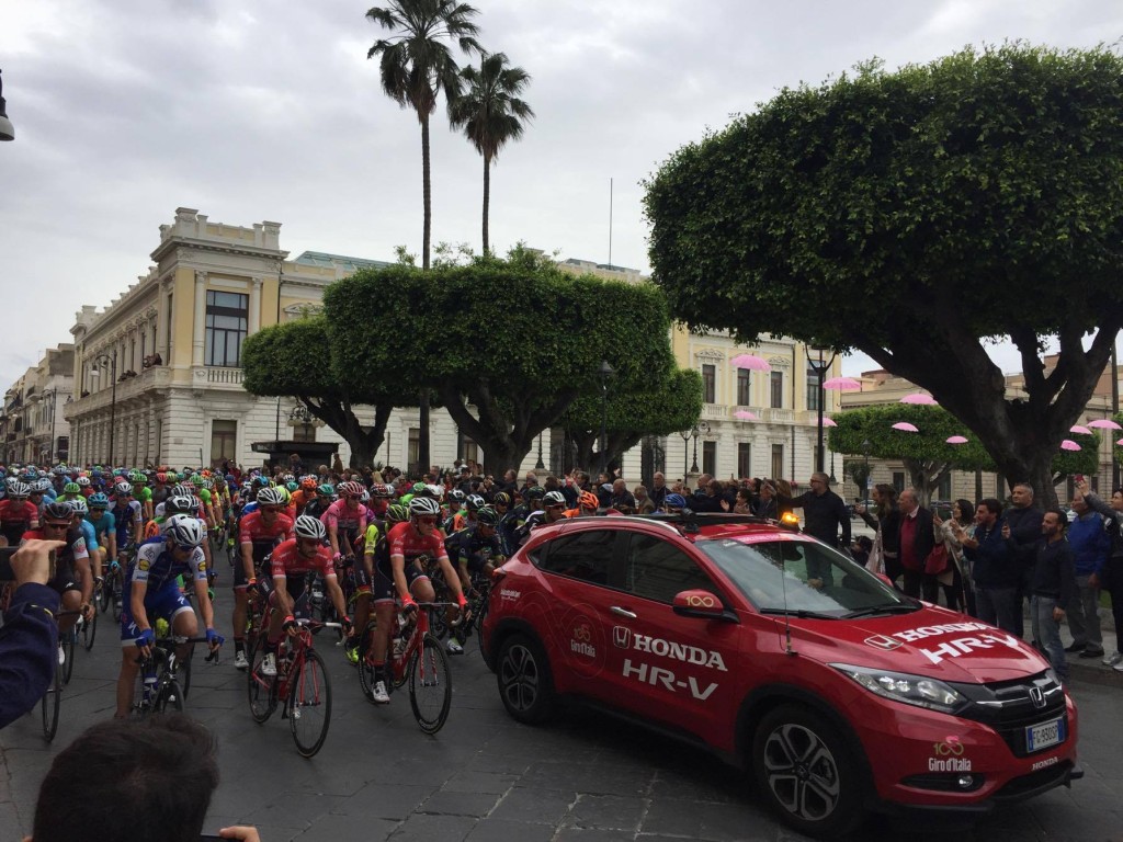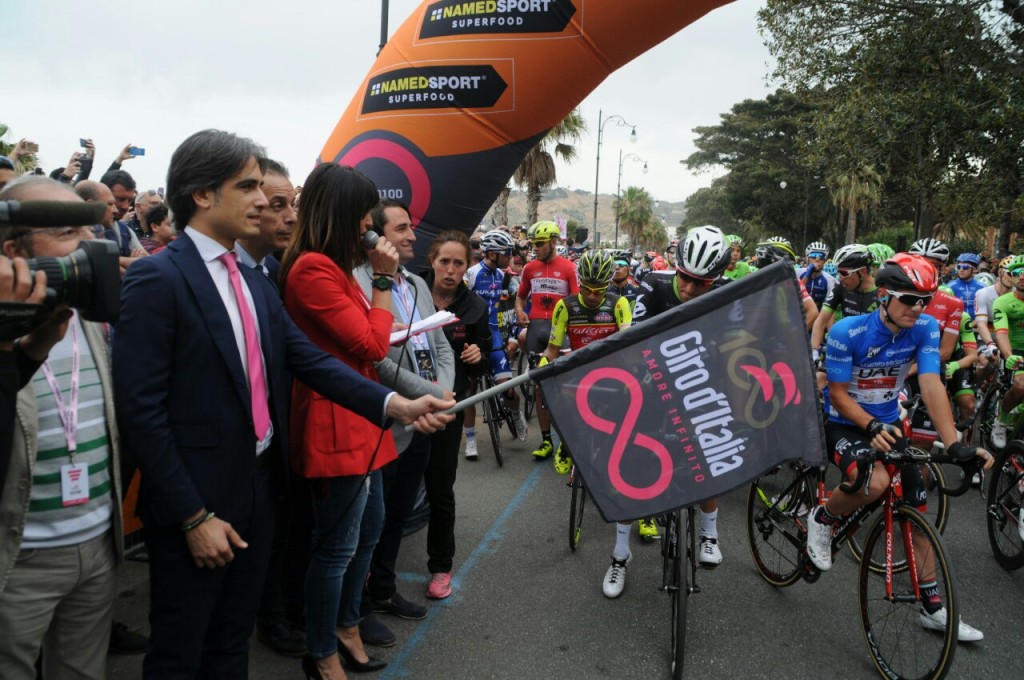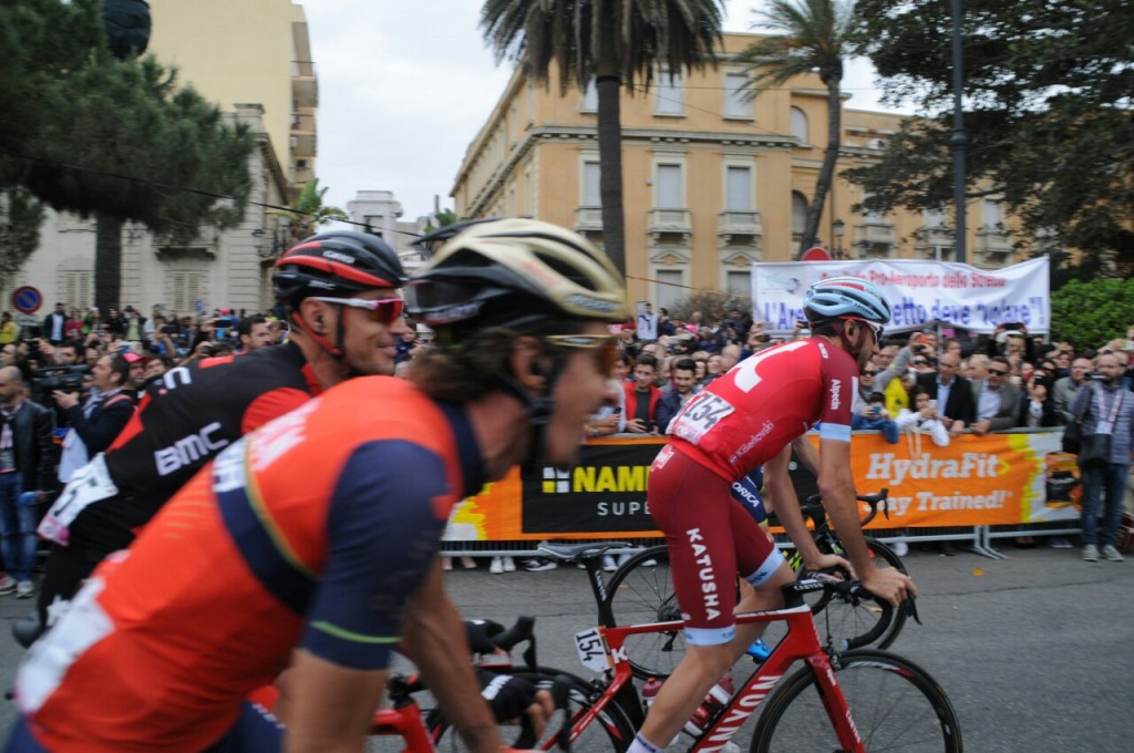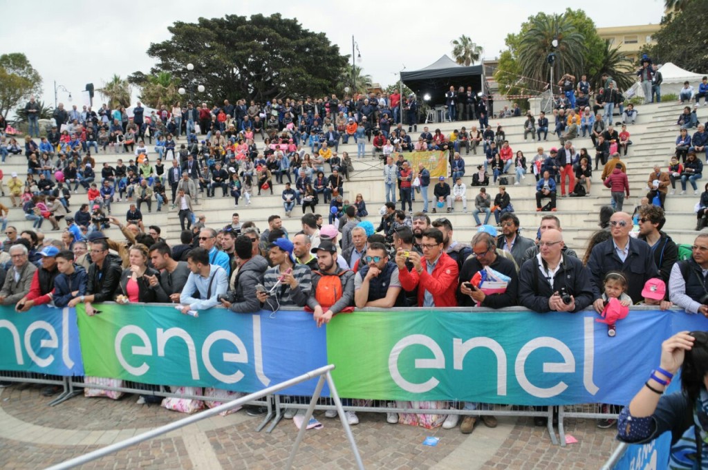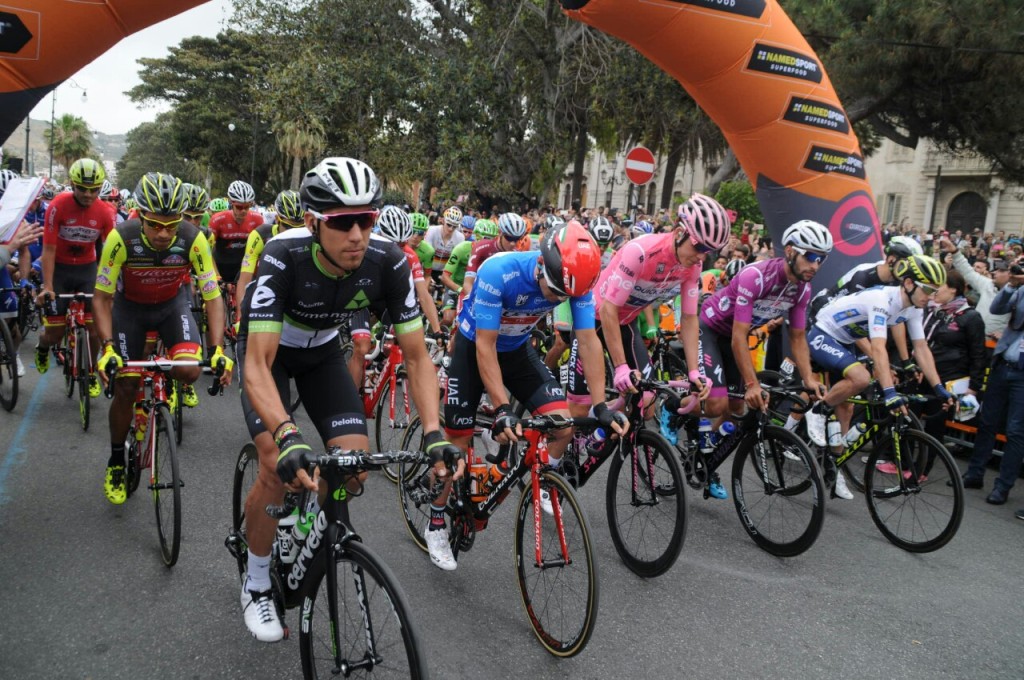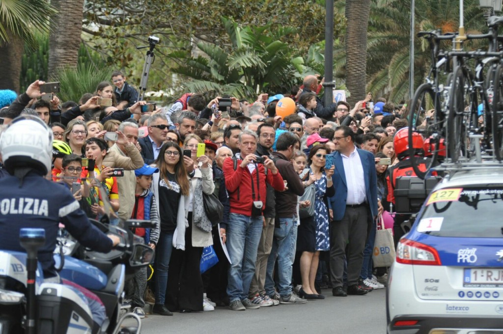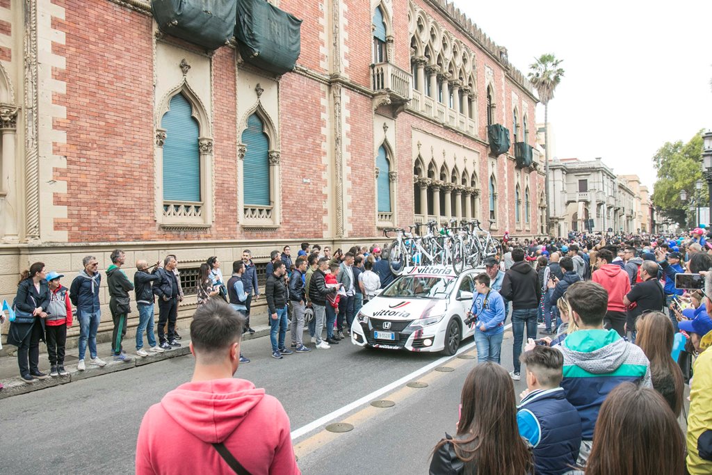 Spettacolare “sfilata” per il Giro d’Italia a Reggio Calabria: stamattina per oltre due ore la città ha avuto una straordinaria vetrina promozionale in mondovisione grazie alla corsa ciclistica giunta quest’anno alla 100ª edizione. La 6ª tappa è partita con un po’ di ritardo a causa di un disguido particolarmente imbarazzante nella zona delle squadre, ma la città ha risposto in modo positivo creando due vere e proprie “ali” di folla intorno al percorso del gruppo, che ha sfilato in tutto il centro cittadino prima di arrivare al “chilometro zero”, situato ad Archi. Tanti applausi per i corridori in gruppo, grande festa con la carovana. Nonostante il cielo nuvoloso e il forte vento di scirocco potessero demoralizzare qualcuno, tantissima gente s’è riversata in strada per abbracciare i campioni su due ruote. Numerosi gli striscioni per Vincenzo Nibali, il messinese più amato a Reggio Calabria, l’unico ad aver davvero unito lo Stretto, e per il compianto Michele Scarponi.