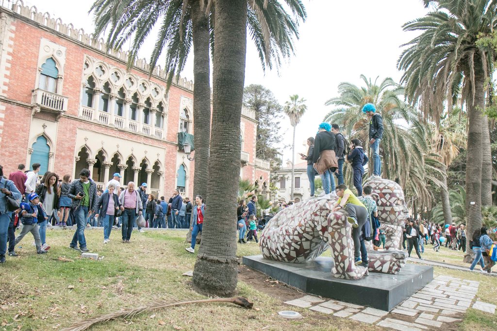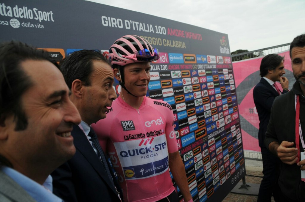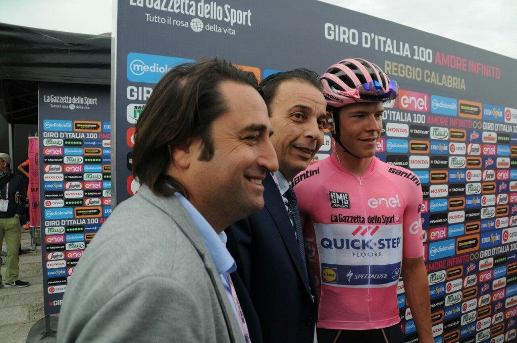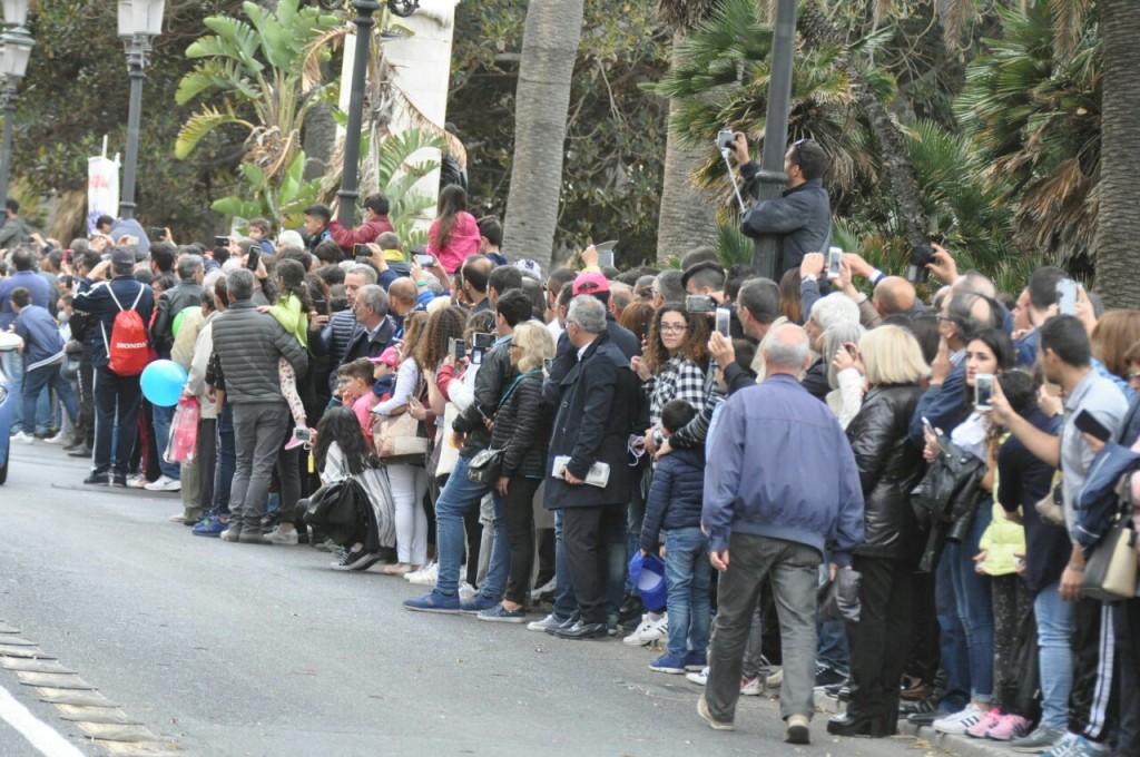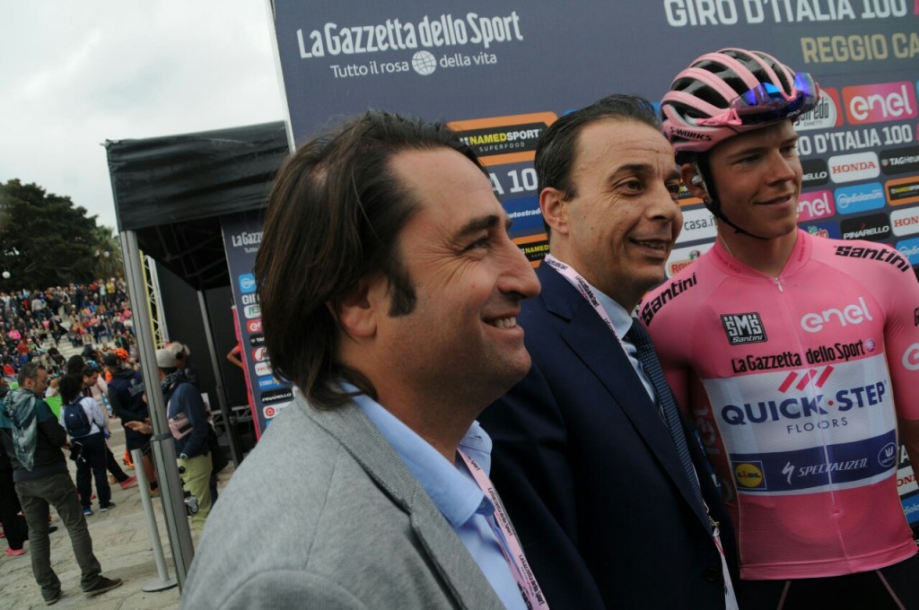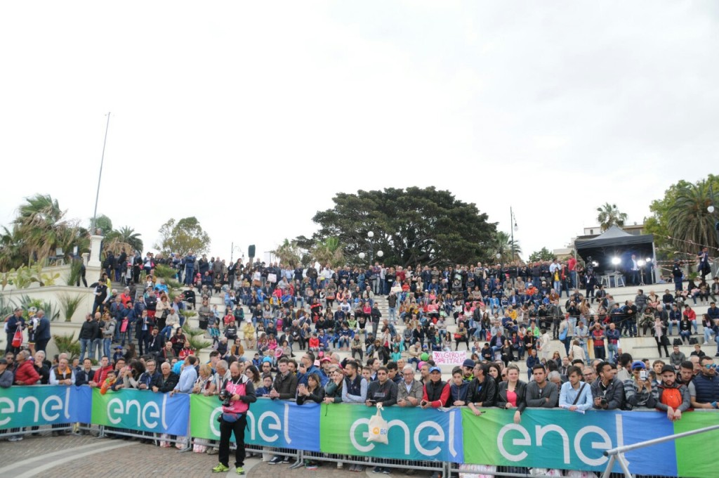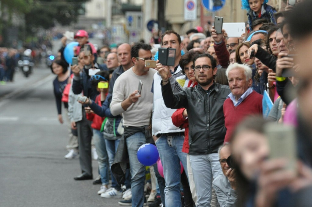 Spettacolare “sfilata” per il Giro d’Italia a Reggio Calabria: stamattina per oltre due ore la città ha avuto una straordinaria vetrina promozionale in mondovisione grazie alla corsa ciclistica giunta quest’anno alla 100ª edizione. La 6ª tappa è partita con un po’ di ritardo a causa di un disguido particolarmente imbarazzante nella zona delle squadre, ma la città ha risposto in modo positivo creando due vere e proprie “ali” di folla intorno al percorso del gruppo, che ha sfilato in tutto il centro cittadino prima di arrivare al “chilometro zero”, situato ad Archi. Tanti applausi per i corridori in gruppo, grande festa con la carovana. Nonostante il cielo nuvoloso e il forte vento di scirocco potessero demoralizzare qualcuno, tantissima gente s’è riversata in strada per abbracciare i campioni su due ruote. Numerosi gli striscioni per Vincenzo Nibali, il messinese più amato a Reggio Calabria, l’unico ad aver davvero unito lo Stretto, e per il compianto Michele Scarponi.