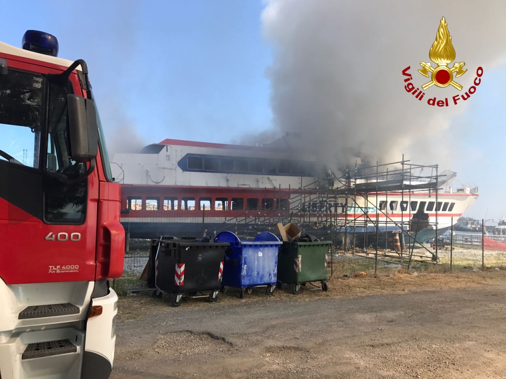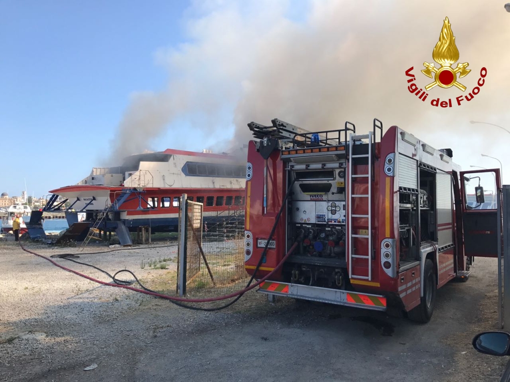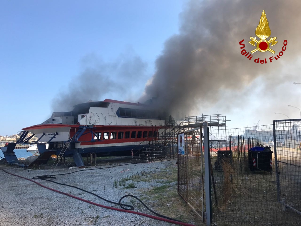 Nel molo sottoflutti del porto di Milazzo un incendio ha coinvolto il relitto dell’aliscafo Masaccio. L’imbarcazione, danneggiata a causa di un incidente nelle acque di Stromboli, giaceva al porto ormai in disuso da un anno, in attesa di essere demolita. L’incendio ha interessato il vano motore e gli abitacoli e le cause sono ancora da accertare a cura dei tecnici della Guardia costiera. Sembrerebbe però che il rogo si sia sviluppato mentre erano in corso dei lavori. Il tempestivo intervento delle squadre di Milazzo dei Vigili del Fuoco, terrestri e portuali, con APS (autopompaserbatoio) ABP (autobottepompa) e MBP Raff (Motobarca), è valso a circoscrivere l’incendio e a scongiurare che le fiamme coinvolgessero anche un rifornimento di carburanti, situato a pochi metri dall’imbarcazione. Non sono state coinvolte persone.