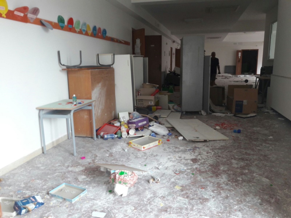 I vandali, dopo aver bivaccato nei corridoi, lasciando a terra bottiglie e resti dei pasti consumati, hanno aperto gli estintori, rovesciato a terra barattoli di vernice e deturpato alcuni muri. Inoltre, sono state divelte diverse porte delle aule e capovolti gli armadi.