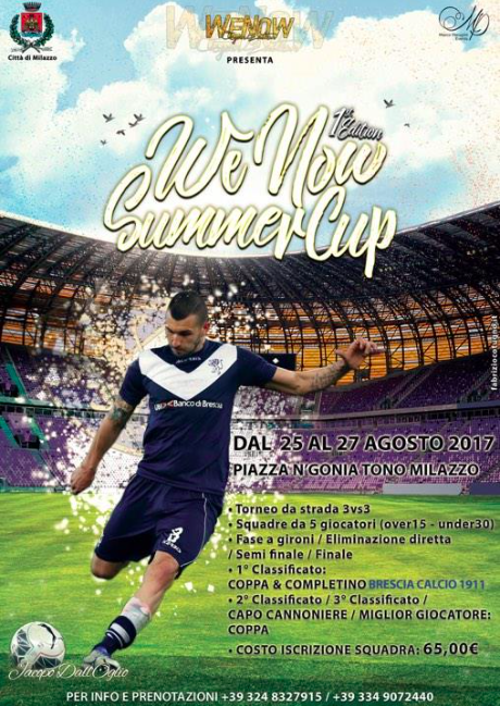 A Milazzo è tutto pronto per questo fine settimana che sarà caratterizzato da un grande evento, ovvero la prima edizione del “We Now Summercup”, un torneo in cui ci sono squadre composte da tre giocatori, dove lo spettacolo sarà assicurato. Chiaramente a vincere sarà la squadra più forte, che potrà puntare a conquistare diversi premi importanti come i completini del Brescia Calcio e la maglia di Jacopo Dall’Oglio al miglior giocatore del torneo.