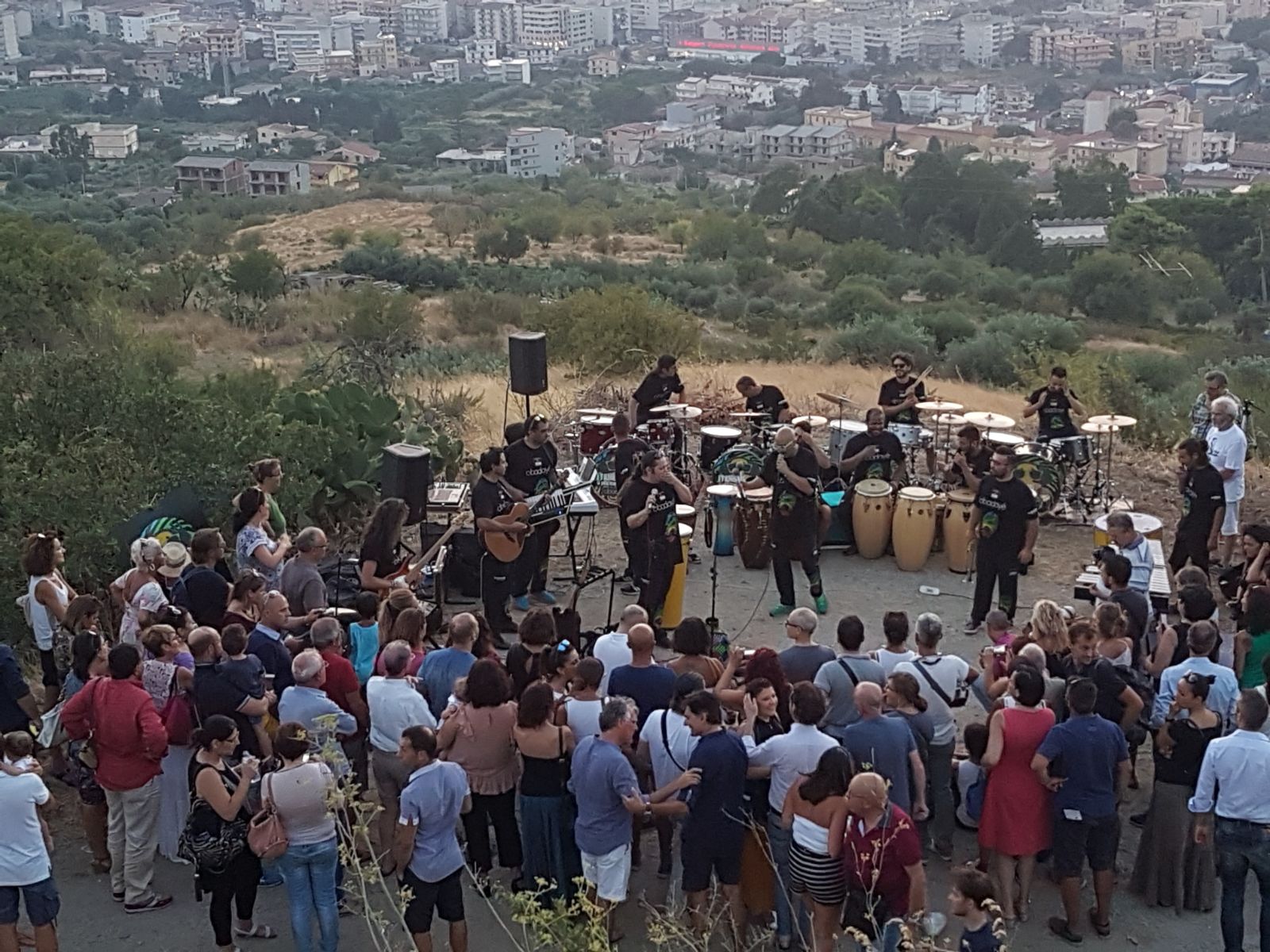 L’urlo dei tamburi di Luca Scorziello sono stati colpi di cannone sparati assieme ai seguaci più affezionati del festival internazionale che si sono inerpicati sulla colina per seguire la band in una performance che definire suggestiva è riduttivo. Tutto il contesto era in sintonia con l’ensemble con lo sguardo che abbracciava tutta la città e lo Stretto di Messina. Man mano che il sole scendeva e si accendevano le luci per strada la magia evolveva e il ritmo dei tamburi guidati dal menestrello dagli occhiali color verde brillante si adattava.