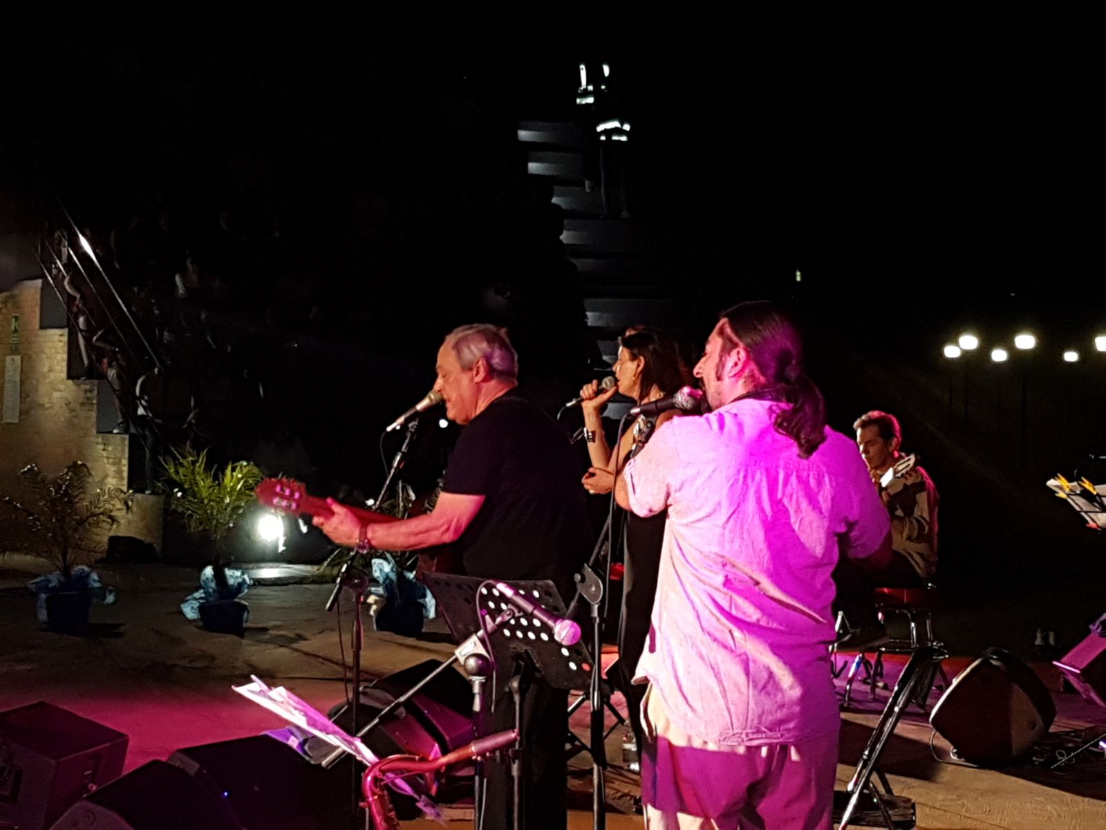 Un tandem affiatato che ha portato nell’estremo sud d’Italia una delle pochissime tappe, dieci in tutto il territorio nazionale, previste per festeggiare i 50 anni di carriera musicale del cantante. Potenza del prestigio dell’Ecojazz e del suo patron, il teatro di Ecolandia ha avuto l’onore della tappa più meridionale del tour. L’esibizione della coppia Toquinho Hernandes è il risultato del felice incontro di due generazioni diverse che in questo live italiano sa parlare a persone di età diversa col medesimo successo. Così è stato nel resto d’Italia e così è stato nel live a Ecolandia.