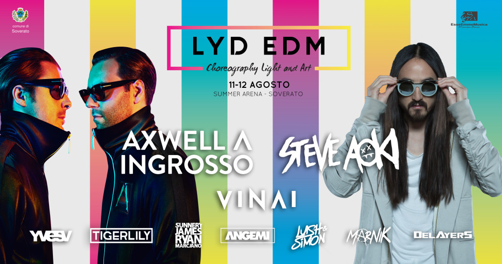La Summer Arena si appresta a vivere la sfida di questa estate 2017. L’area ideata e gestita dalla Esse Emme Musica di Maurizio Senese ospiterà infatti per la prima volta al Sud, una produzione unica per il Meridione dedicata agli amanti della electronic music dance. E’ il LYD EDM, acronimo di Live Your Dream – Electronic Dance Music Festival che ospiterà a Soverato oltre 10mila fan che arriveranno anche da fuori regione per celebrare il sano divertimento accompagnati dal suono della musica elettronica, l’11 e il 12 agosto. Nel corso della due giorni la grande festa della musica, vera sorpresa dell’estate 2017 mai sperimentata in precedenza, sarà condotta da una line up di dj/producer internazionali che si esibiranno su uno stage mastodontico, circondato da scenografie spettacolari e coreografie ma viste prima. A dirla tutta sulla portata dell’evento è la line up, davvero prestigiosa, con dj provenienti dai Migliori festival del mondo, come il Tomorrowland o l’Ultra Music Festival, per citarne solo un paio. On stage per il LYD – EDM ci saranno i fratelli Vinai, nel 2016 arrivati alla 37esima posizione di Dj Mag Top 100; Marnik; i Delayers che si presentano a Soverato forti della loro collaborazione con Nari&Milani e Tiesto; Lush & Simon definiti i nuovi talenti dell’EDM, supportati dai migliori dj producer di tutto il mondo come Hardwell, Davide Guetta, Martin Garrix, Tiesto e Alesso; e poi ancora ci sarà il dj/producer statunitense di origine giapponese, Steve Aoki, attualmente settimo nella Dj Mag Top 100; il belga resident al Tomorrowland Yves V; Angemi, dj/producer catanese che con la sua musica è arrivato a esibirsi sui palchi più importanti del mondo, supportato da Smash The House, la label fondata da Dimitri Vegas & Like Mike. La line up prosegue poi con il duo olandese di Sunnery James & Rian Marciano, il duo svedese Axwell/\Ingrosso, già protagonisti a Tomorrowland, Edc, World club dome e Ultra music festival, dove hanno eseguito il set più bello in assoluto. Presenza femminile sullo stage del LYD – EDM, sarà l’australiana Tigerlily, unica lady del Festival.