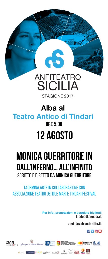 Sarà un risveglio unico il 12 agosto per gli abitanti e i turisti di Tindari. Un ‘alba incantevole che unisce cielo e mare in una delle più belle aree archeologiche siciliane, in una cavea di un Teatro Antico rivolto al Tirreno. Sul palco una luminosa Monica Guerritore dentro il buio di una scenografia essenziale condurrà il pubblico in un viaggio spirituale nell’io interiore di ciascun individuo, una performance che racconta una discesa (e ritorno) nell’animo umano compiuto attraverso i versi di autori immortali. Un viaggio letterario nell’animo umano compiuto attraverso le parole di grandi autori, che con forza e passione si sono interrogati sul senso dell’esistenza. Parole, testi, versi altissimi sradicati dalla loro collocazione ‘conosciuta ‘ per restituirgli il senso originario e potente. Dall’Inferno di Dante all’Infinito di Leopardi attraverso Pasolini, Morante, Valduga, Pavese, Hugo, Valery, Flaubert…. E poi tutta la forza espressiva di Monica Guerritore e la forza della musica da Wagner a Sakamoto, Barber/Bernstein, Craig Armstrong, Eleny Karaindrou che accompagnano la performance. “Dall’inferno … all’infinito” è un racconto magico scritto e diretto da Monica Guerritore, messo in scena grazie alla regia di Lucilla Mininno, al disegno luci di Paolo Meglio e alla produzione Parmaconcerti srl. Come la Guerritore ha dichiarato, parlando di questo spettacolo: <<Nella mia intenzione, il desiderio forte di sradicare parole, testi, versi altissimi dalla loro collocazione “conosciuta”, per restituirgli un “senso” originario e potente>>.