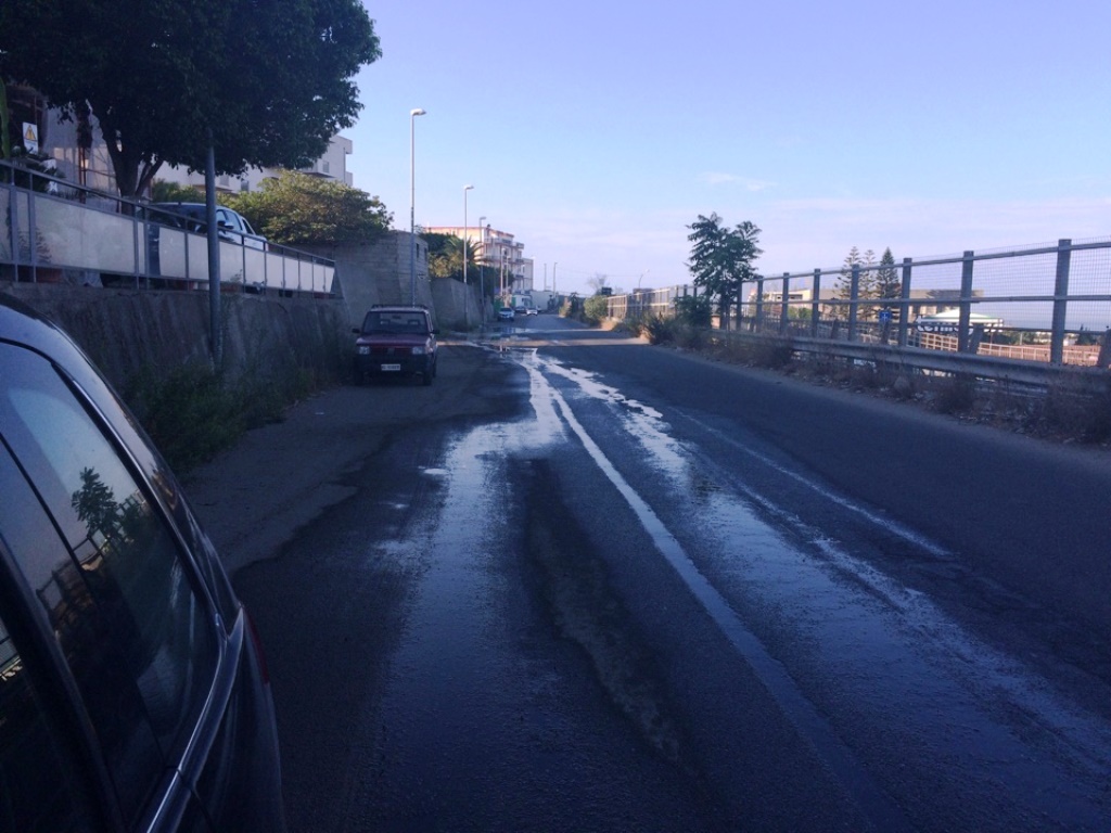 Continuano a passare i giorni, i mesi e gli anni e l’enorme perdita d’acqua presente in via Trapezzoli, nella zona sud di Reggio Calabria, è ancora li che raccoglie zanzare e aria maleodorante per i ristagni che stanno per fare diventare la zona una palude con piante acquatiche rare. In via Trapezzoli sono almeno 3 anni che la situazione rimane invariata, la strada è un “fiume in piena”, l’acqua che “sgorga” arriva da monte fino a valle, arrivando ad allagare la rotonda e la rampa dello svincolo autostradale di Croce Valanidi e creando un serio pericolo per gli automobilisti. Dal Comune non si registra alcun intervento, probabilmente si aspetta il peggio prima di intervenire e ripristinare la zona. La cattiva gestione di Palazzo San Giorgio non ha confini e arriva anche nelle frazioni più ricche d’acqua della città.