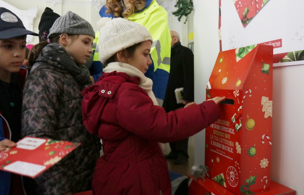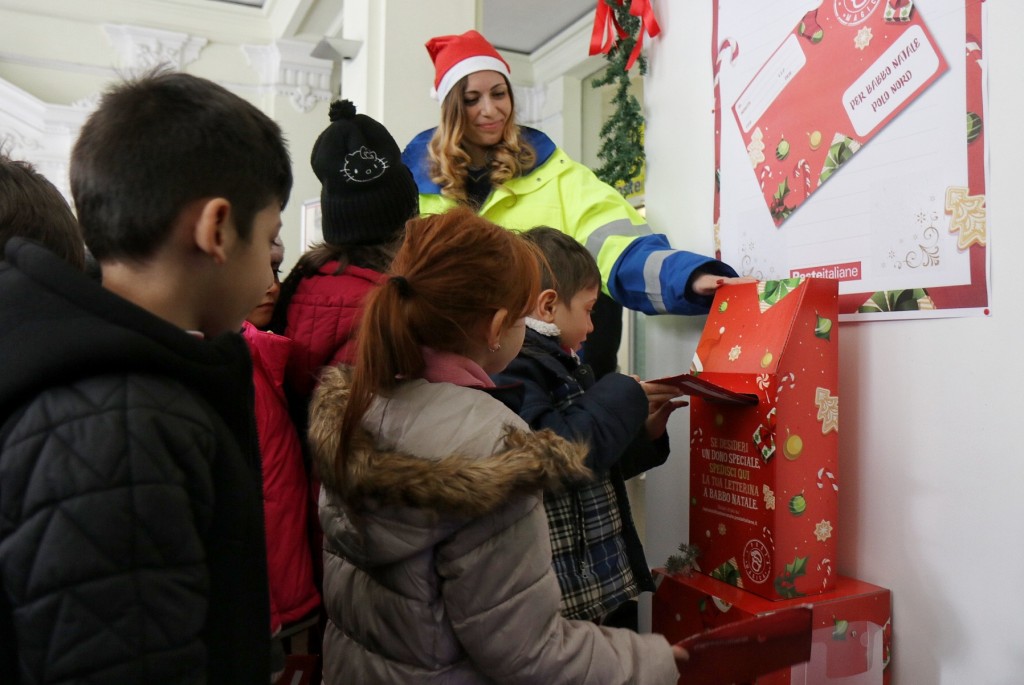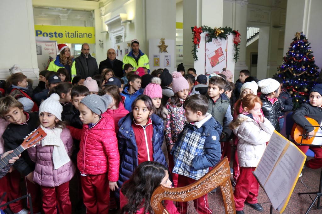 Sono quasi settanta i bambini della scuola “Diego Vitrioli-Principe di Piemonte” che stamani hanno dato il via al tradizionale appuntamento di Poste Italiane delle letterine a Babbo Natale. Oggi infatti sono venuti ad imbucare la letterina alle Poste centrali di via Miraglia le seconde classi della scuola elementare. Ad attenderli c’erano gli speciali postini di Babbo Natale e tante piccole sorprese. Un’occasione particolare per i bambini che per un giorno sono stati protagonisti di una delle più belle tradizioni del Natale. Le classi hanno infatti, per l’occasione, intonato dei canti natalizi e suonato diversi strumenti musicali. Attraverso questo progetto Poste intende far scoprire ai bambini l’importanza della scrittura come strumento espressivo, sia nella sua forma tradizionale, sia nelle sue evoluzioni digitali. Nella lettera di risposta infatti i bambini hanno trovato dei giochi pensati per stimolare la loro creatività e fantasia: adesivi disegnati da Babbo Natale “in persona” con la sua speciale calligrafia. Inoltre, la lettera include l’invito a scaricare l’app “L’Abbecedario di Natale” (disponibile a breve su Google Play e Apple Store): un gioco per creare disegni animati da condividere via web e sui social con amici e parenti. Da non perdere i numerosi eventi organizzati negli uffici postali della maggior parte delle città italiane, in ogni regione, dedicati agli alunni delle scuole elementari; un’occasione speciale per i bambini di essere protagonisti del Natale ed esprimere i propri sogni e desideri.