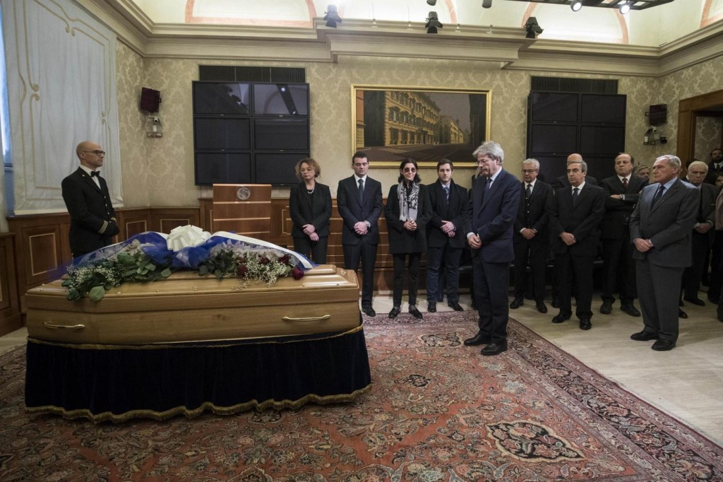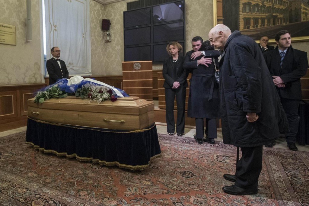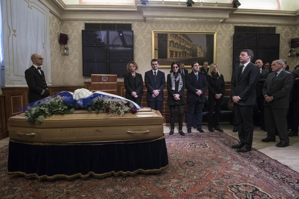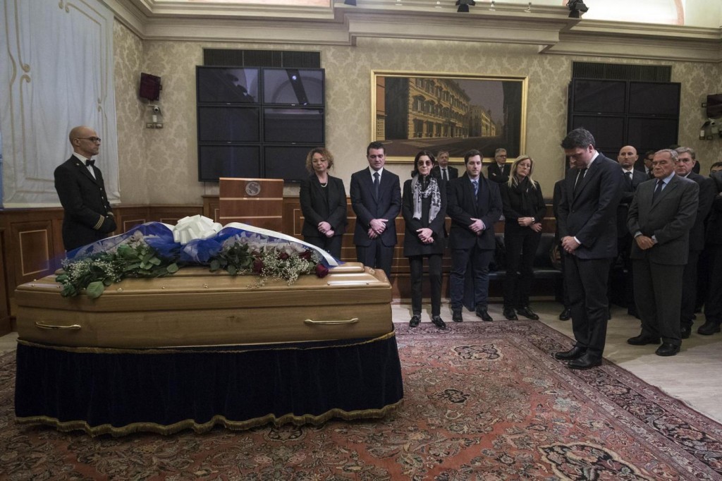 E’ stata aperta questa mattina alle ore 9, la camera ardente dell’ex Ministro dei Trasporti, Altero Matteoli deceduto lunedi’ in un incidente stradale sulla via Aurelia all’altezza di Capalbio. Tra i primi a rendere omaggio l’ex presidente della Camera dei Deputati, Irene Pivetti, l’ex ministro Mario Mauro, Antonio Razzi, Maurizio Gasparri, Paolo Romani, Renato Brunetta. Nel cortile esterno alla sala Nassirya sono state poste le corone di fiori di Presidente e giunta della regione Liguria, dei deputati di Forza Italia e della Fondazione di Alleanza Nazionale. Nella foto a corredo dell’articolo i figli Federica e Federico e la moglie Ginevra, Matteo Renzi, Piero Grasso.