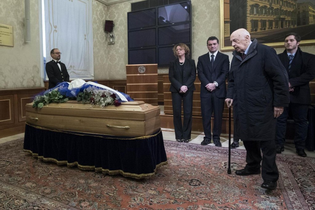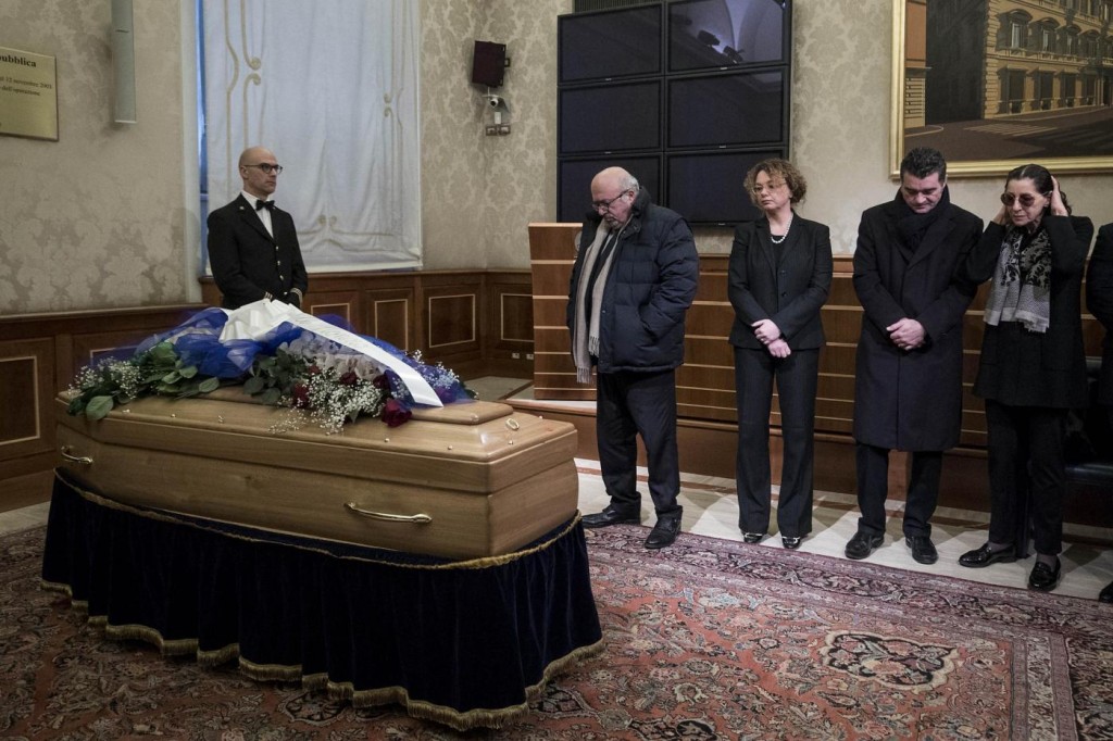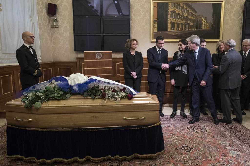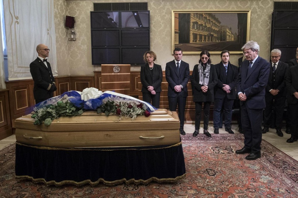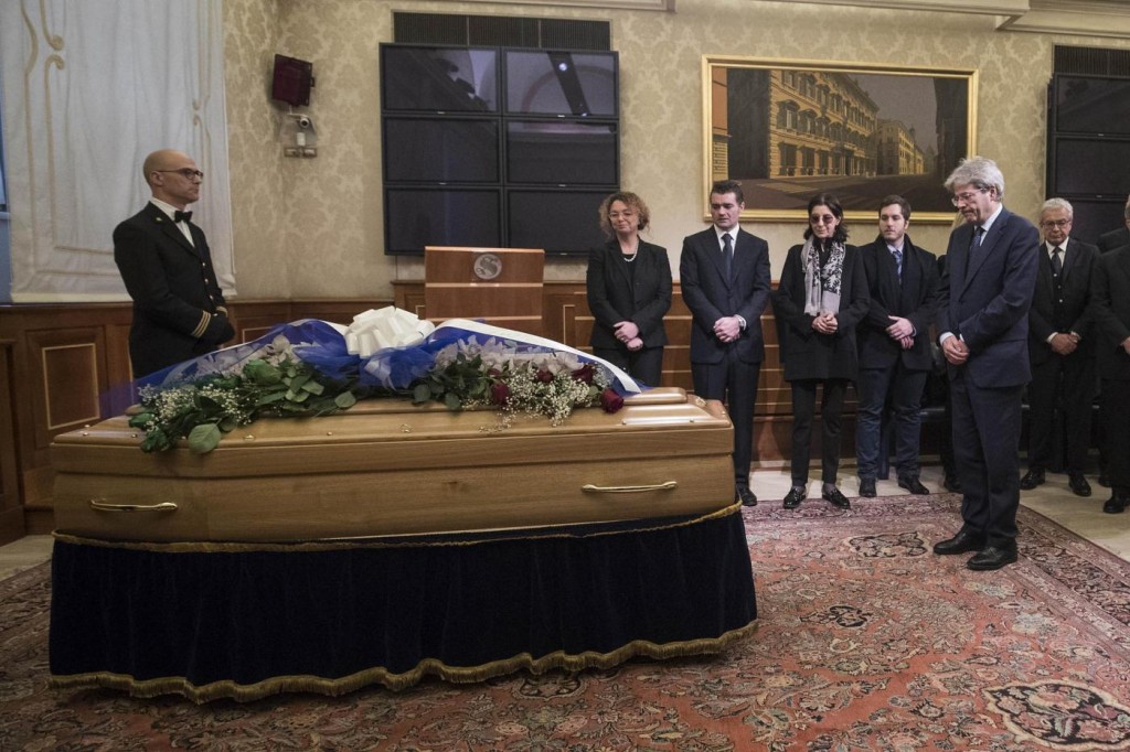 E’ stata aperta questa mattina alle ore 9, la camera ardente dell’ex Ministro dei Trasporti, Altero Matteoli deceduto lunedi’ in un incidente stradale sulla via Aurelia all’altezza di Capalbio. Tra i primi a rendere omaggio l’ex presidente della Camera dei Deputati, Irene Pivetti, l’ex ministro Mario Mauro, Antonio Razzi, Maurizio Gasparri, Paolo Romani, Renato Brunetta. Nel cortile esterno alla sala Nassirya sono state poste le corone di fiori di Presidente e giunta della regione Liguria, dei deputati di Forza Italia e della Fondazione di Alleanza Nazionale. Nella foto a corredo dell’articolo i figli Federica e Federico e la moglie Ginevra, Matteo Renzi, Piero Grasso.