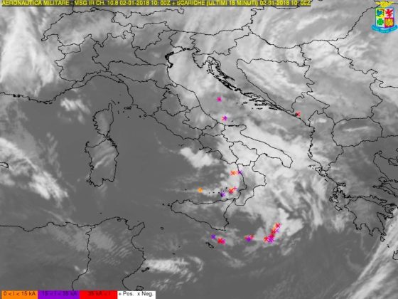 Nelle prossime ore il vento si attenuerà in Sardegna, ma si rinforzerà notevolmente all’estremo Sud, nel basso Tirreno tra Calabria e Sicilia, e nello Stretto di Messina dove avremo un pomeriggio/sera terribile con raffiche di oltre 100km/h (vedi mappe a corredo dell’articolo). Proprio in concomitanza con questa tempesta impetuosa, che alimenterà furiose mareggiate nella zona delle isole Eolie e sulle coste tirreniche siciliane e calabresi, il maltempo raggiungerà il suo picco più violento. I temporali, infatti, scateneranno grandinate fin sulle coste con piogge torrenziali e abbondanti nevicate oltre i 900 metri sui rilievi meridionali, in modo particolare su Serre, Aspromonte, Peloritani e Nebrodi tra le province di Vibo Valentia, Reggio Calabria e Messina. Forti piogge anche tra Molise, Puglia, Campania e Basilicata, dove la quota neve si abbasserà per qualche ora fino ai 700 metri di altitudine. Avremo così in serata il picco del freddo e del maltempo.