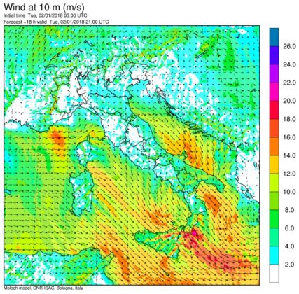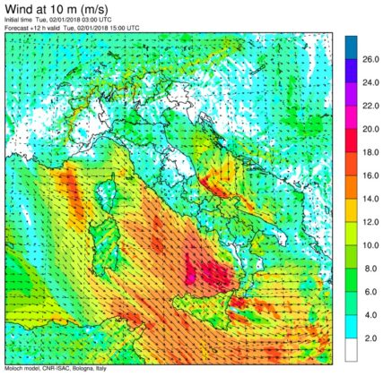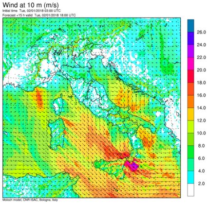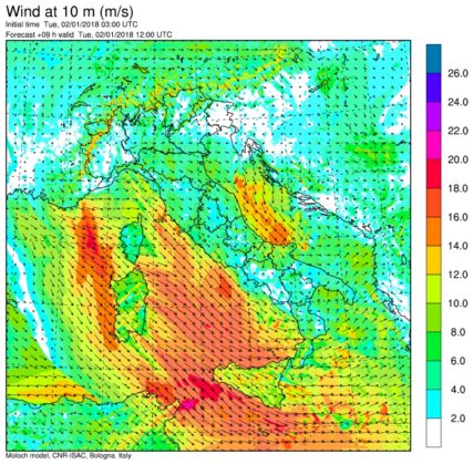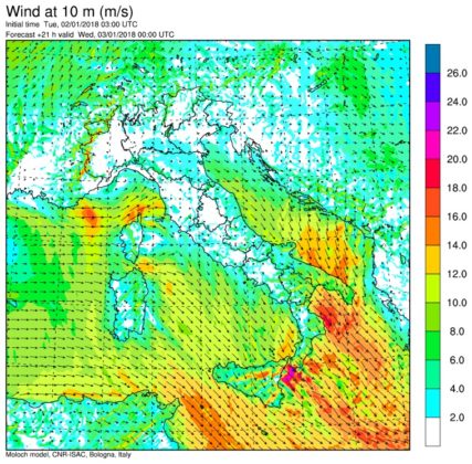 Allerta Meteo- La tempesta di maltempo invernale che nella giornata di Capodanno ha colpito il Centro/Nord, s’è spostata stamattina al Centro/Sud flagellato da raffiche di vento di ponente e maestrale (Ovest-Nord/Ovest) simili a quelle di un Uragano, forti piogge, temporali sparsi e nevicate abbondanti sui rilievi Appenninici. Tra le città più colpite dal forte vento, Palermo e Catanzaro dove le raffiche hanno sfiorato i 90km/h. Venti impetuosi anche in Sardegna, fino a 115km/h a Capo Carbonara e 109km/h a Capo Bellavista, con forti mareggiate sulle coste esposte. Proprio il forte vento ha mandato in tilt i collegamenti marittimi in tutto il Sud. A causa di mare agitato e forte vento, tutte le corse operate da aliscafi e traghetti per collegare l’isola di Capri con la terraferma sono state sospese. E sempre a causa del forte vento, in Sicilia sono state sospese le corse del mattino delle navi che collegano Milazzo alle Eolie, Trapani alle Egadi e Palermo a Ustica.