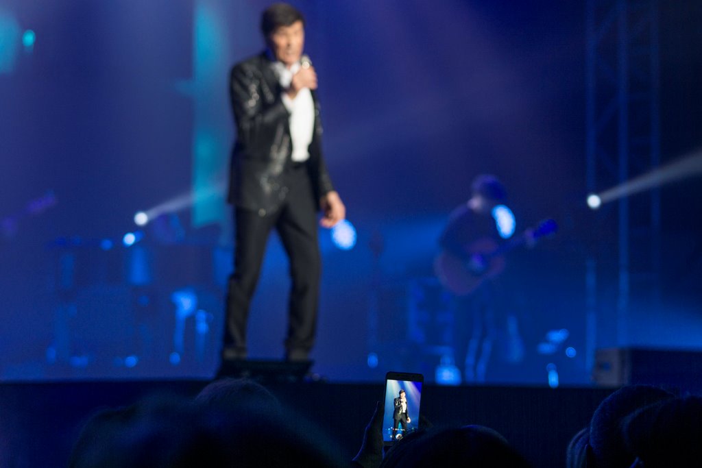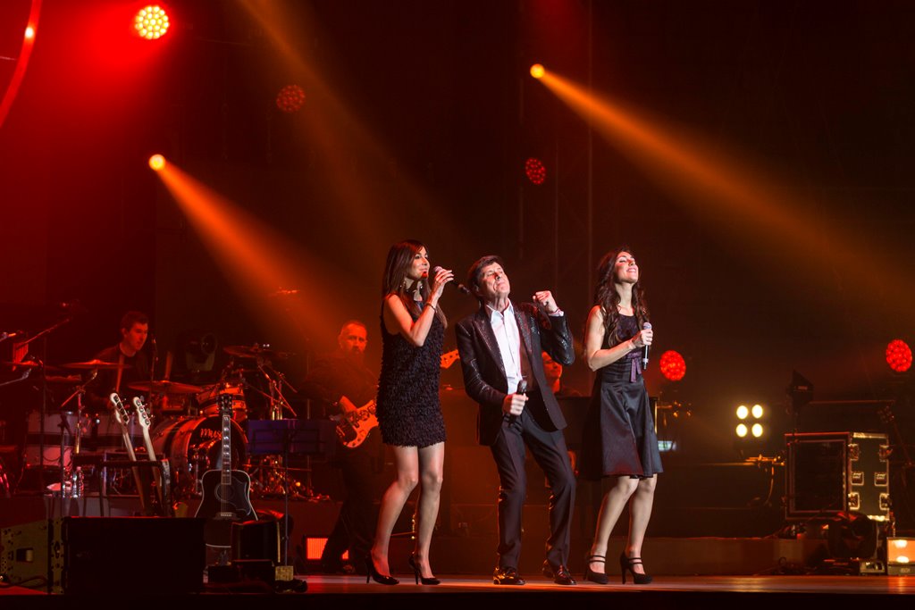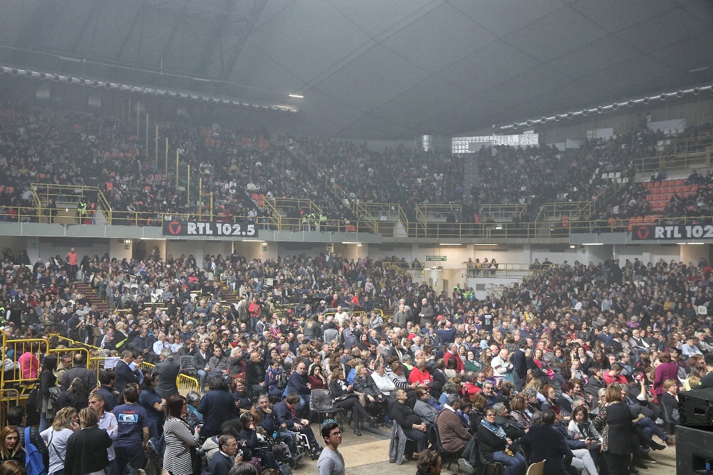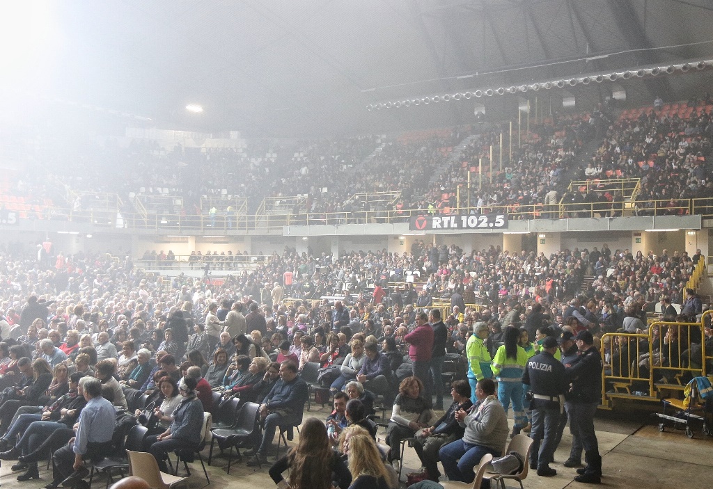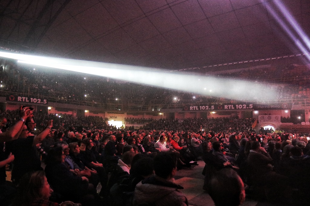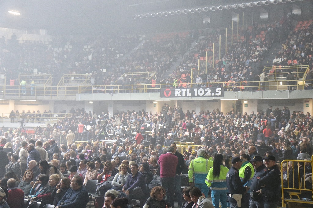 Si presenta puntualissimo, alle 21 come da programma, sera di giovedi 15 marzo, inizia infilando un motivo dopo l’altro e il Palazzetto trema sin da subito, la febbre sale; sentimenti ed emozioni si susseguono senza soluzione di continuità. Ci si sente rapiti, ipnotizzati da una forza irresistibile che l’eterno ragazzo della canzone italiana trasmette con energia e passione. Gianni Morandi incanta, rapisce, seduce il numeroso pubblico attento e partecipe che canta all’unisono con lui, e con la sua band, un gruppo di artisti tutti bravissimi: Mattia Bigi al basso, Lele Leonardi e Elia Garutti alla chitarra, Alessandro Magri alle tastiere, Simone D’Eusanio al violino, Francesco Montisano al sax, Lisa Manara, Augusta Trebeschi e Moris Pradella ai cori, e l’impressionante batterista Alberto Paderni che ha diffuso percussioni fantastiche; un insieme armonioso in una cornice scenografica suggestiva grazie all’impegno pregevole dei tecnici di suono e luci. Corre da maratoneta, quale d’altronde è non solo in senso figurato, anche sul palcoscenico, senza risparmiarsi , con grande rispetto del variegato pubblico, testimone trasversale di diverse generazioni, che apprezza e ricambia, e il cuore e l’anima che mette nel suo cantare arrivano al cuore e all’anima senza se e senza ma, in un susseguirsi di motivi che hanno segnato molti momenti della tua vita e canzoni nuove altrettanto belle e dense di significato. Canta Gianni, senza una pausa, senza un attimo di respiro, decine e decine di pezzi, oltre quaranta; canta l’amore e canta anche la guerra sulle note dell’ormai celeberrima C’era un ragazzo che come me..., canta il quotidiano con le note di Uno su mille, canta il sociale con Si può dare di più. Canta l’amore, dunque, argomento per antonomasia : da La Fisarmonica, a Ritornerò in ginocchio da te, da Scende la pioggia a Un grande prato verde, da Occhi di ragazza a Innamorato, da Grazie perchè a Dobbiamo fare luce e tanto tanto altro. Rende onore e merito, Gianni, agli autori che si sono spesi per lui : da Elisa a Fossati, da Ligabue a Sangiorgi passando per Meta, che insieme ad altri artisti importanti hanno collaborato al suo ultimo recente album ” D’amore e d’autore”. Non si ferma un istante, e, in barba a chi a 70 anni si sente vecchio, il Morandi da Monghidoro grida a pieni polmoni il suo amore per la vita
