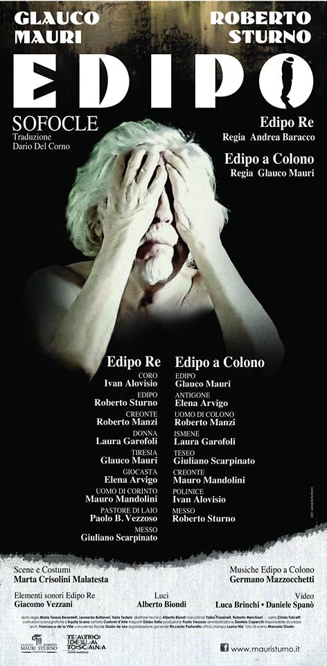 Lo spettacolo in scena al Teatro Vittorio Emanuele di Messina dal 23 al 25 marzo 2018, prodotto dalla Compagnia Mauri Sturno e Teatro della Toscana, porta in scena, come sottolineato nelle note di regia di Andrea Baracco e Glauco Mauri, “Due registi, due generazioni a confronto, esempio di collaborazione e di continuità, oltre che condizione indispensabile per il futuro del teatro… Edipo Re e Edipo a Colono sono due opere scritte in epoche diverse della vita di Sofocle ed è nell’accostamento di questi due grandi testi che poeticamente si esprime e compiutamente si racconta la favola di Edipo alla ricerca della verità”.