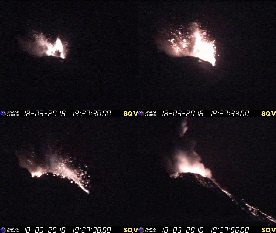In questo caso è stata emessa cenere e materiale più grossolano (lapilli e bombe) che hanno raggiunto un’altezza di circa 100 m sopra la bocca. In ambedue le esplosioni è stata generata una nube di cenere che si è dispersa rapidamente nei quadranti orientali del vulcano. La durata della sequenza è stata complessivamente di 40 secondi circa. Violente sequenze esplosive, come quella descritta, si sono verificate anche di recente: lo scorso 7 marzo e il 26 luglio, 23 ottobre, 1 novembre, 1 dicembre del 2017.